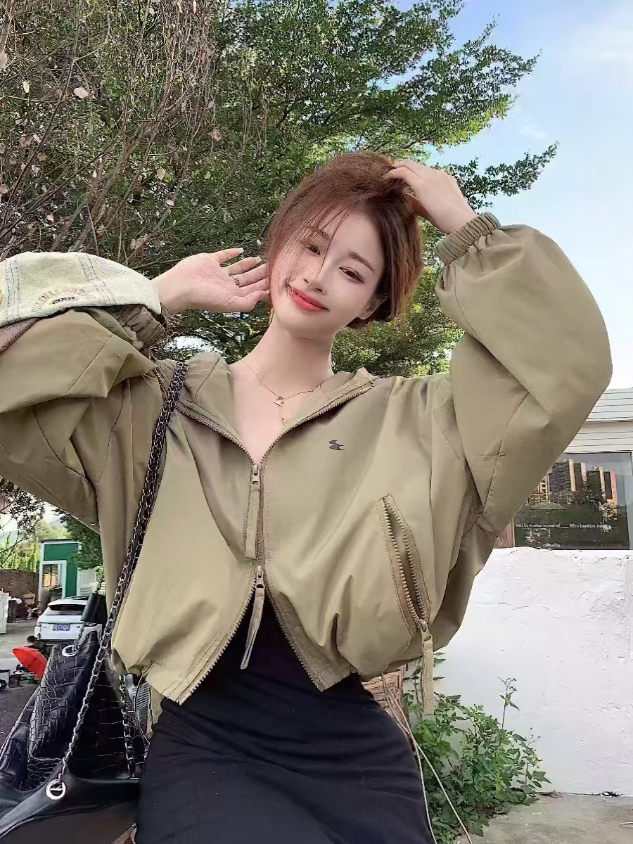 여성용 후드 재킷 짧은 스타일 2025 봄 가을 신상품 작은 사이즈 캐주얼 다용도 고급 재킷 코트 상의