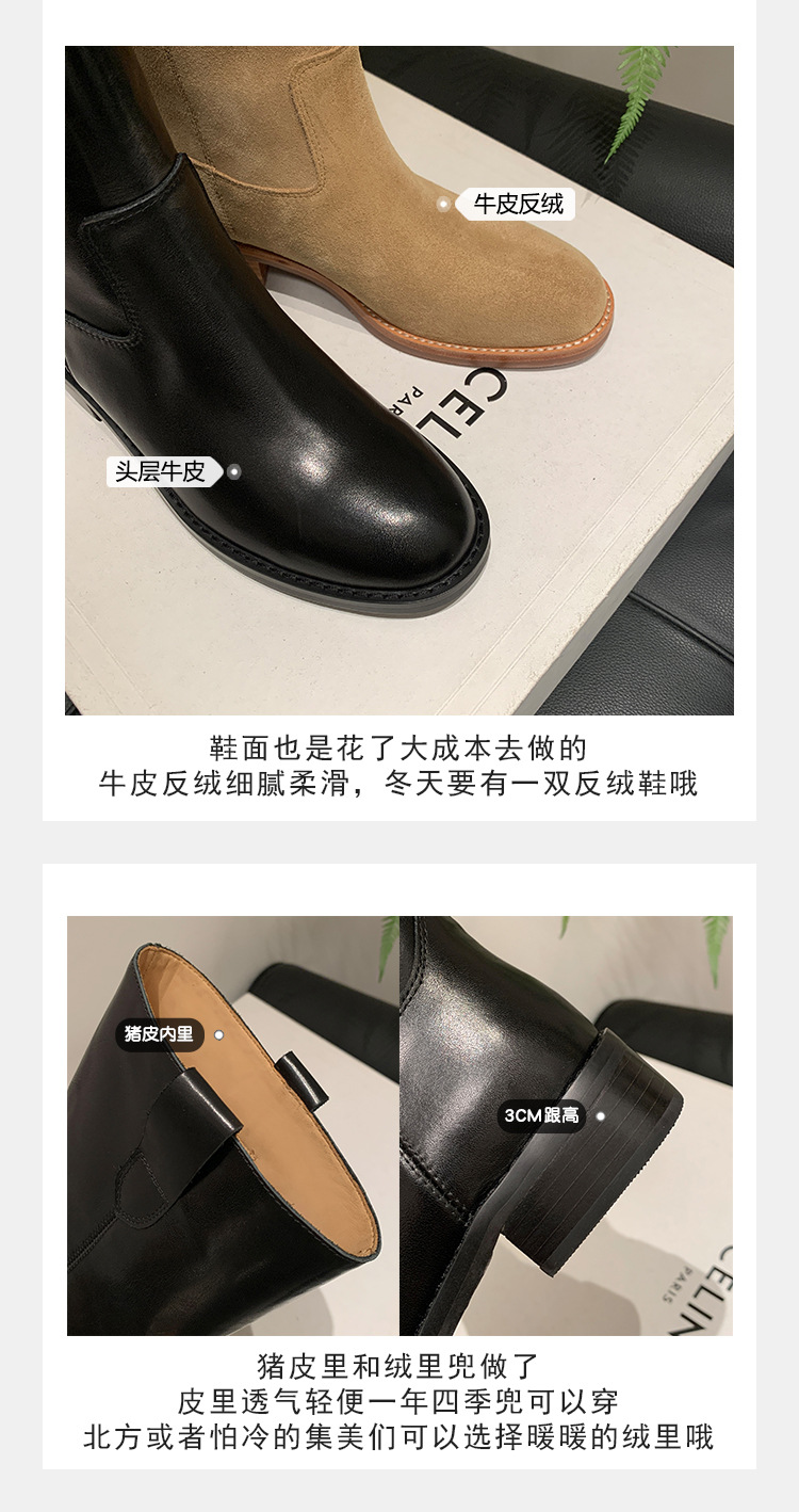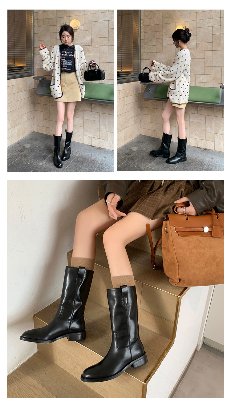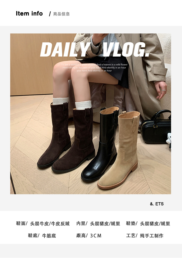 2024 새로운 순수 가죽 짧은 부츠 여성 가을 및 겨울 느슨한 스트레이트 나이츠 부츠 낮은 청키 힐 미드 부츠 올매치 웨스턴 부츠스토어 가기