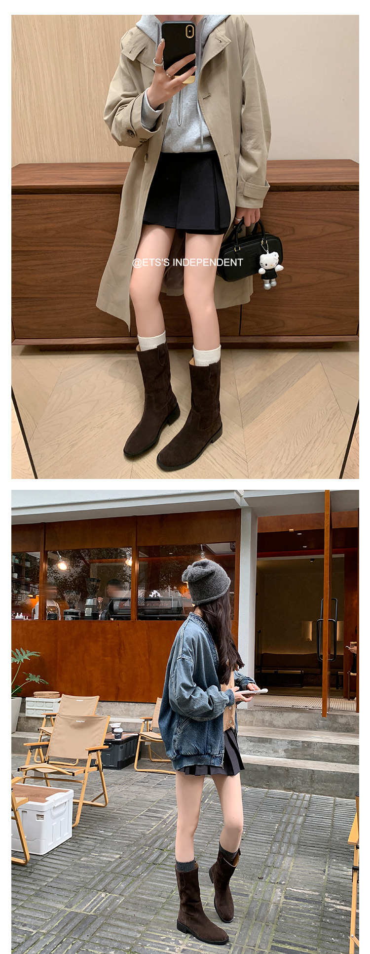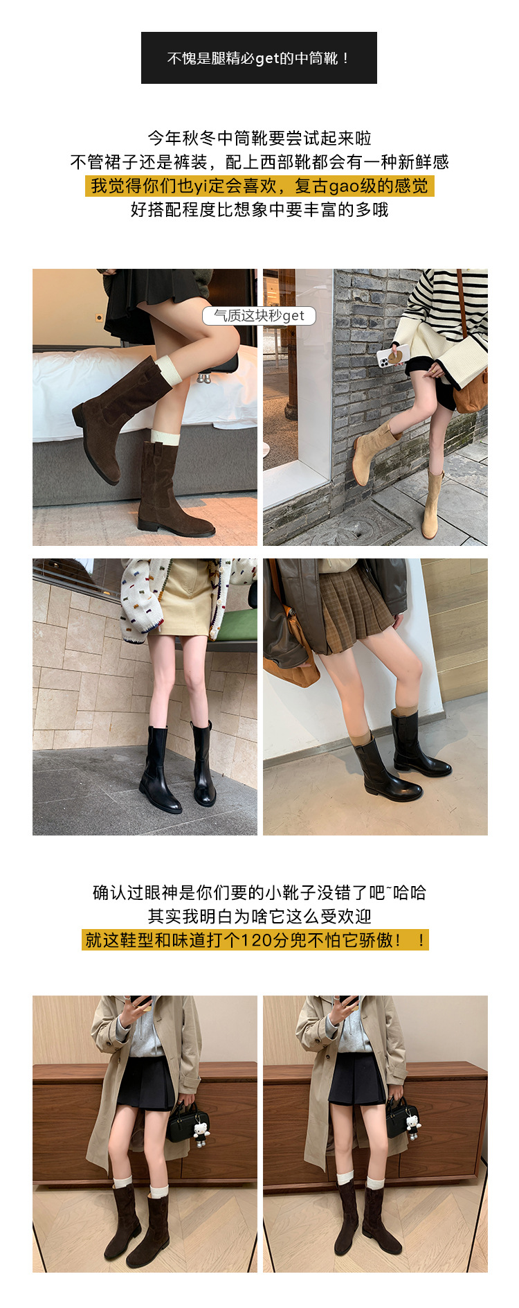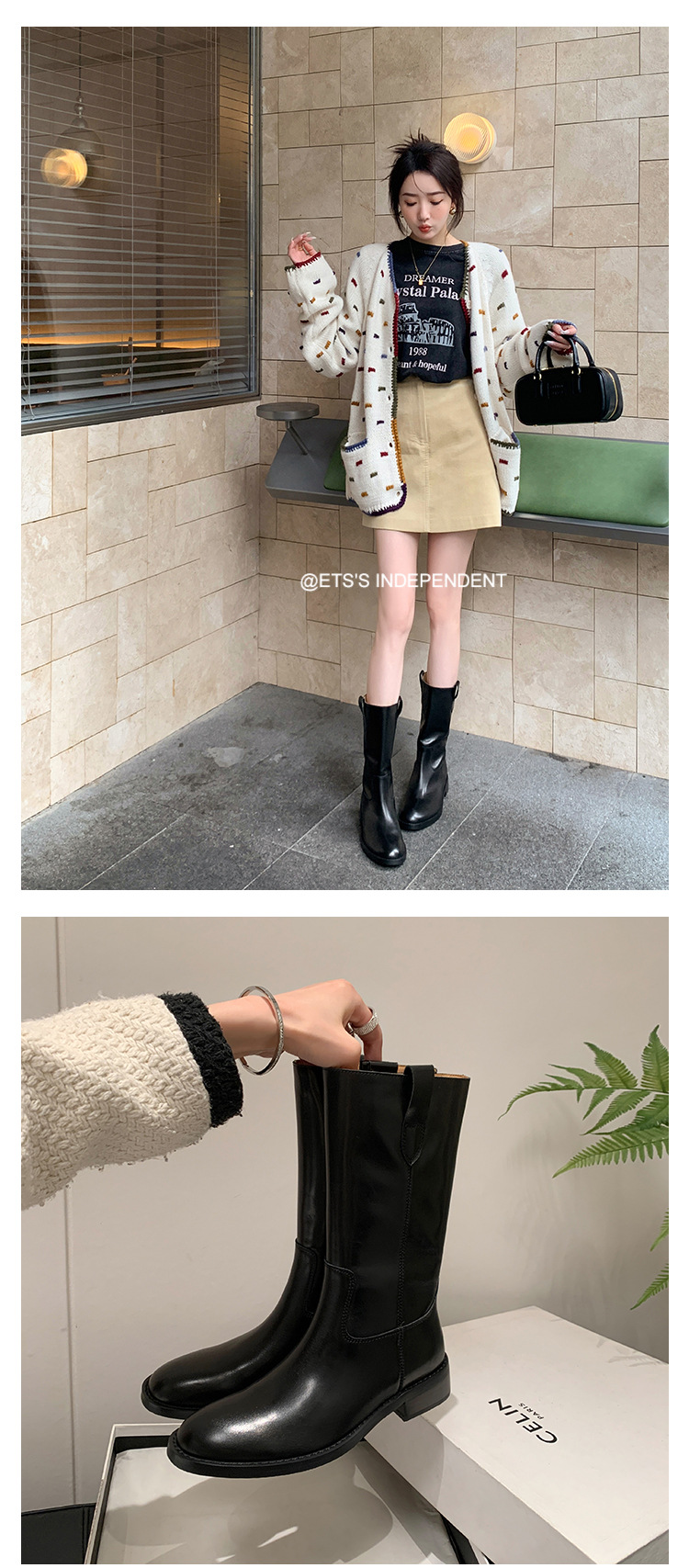 2024 새로운 순수 가죽 짧은 부츠 여성 가을 및 겨울 느슨한 스트레이트 나이츠 부츠 낮은 청키 힐 미드 부츠 올매치 웨스턴 부츠스토어 가기
