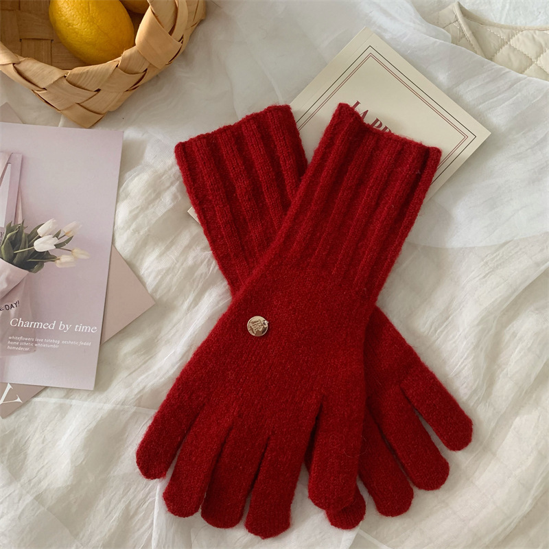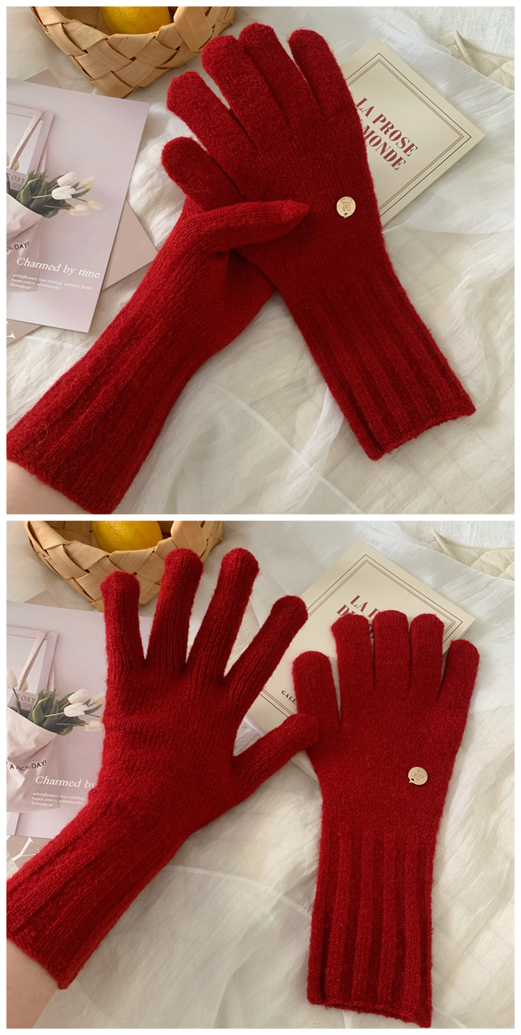 하이 퀄리티 ~ 새해 빨간 니트 양모 장갑 여자 겨울 한국식 오픈 손가락 터치스크린 학생 커플 따뜻한스토어 가기