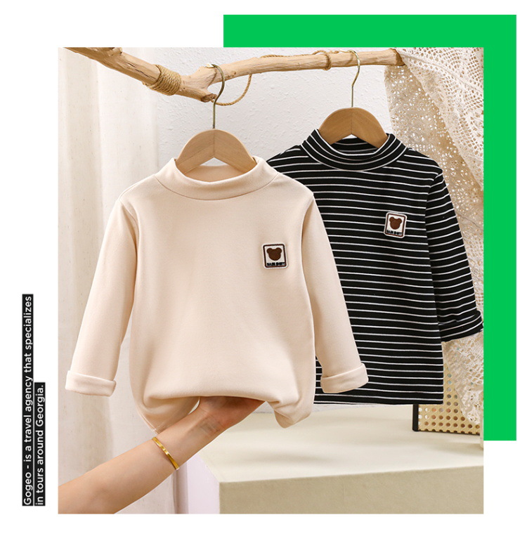 어린이 기모 기지 셔츠 가을과 겨울 새로운 두꺼운 따뜻한 아기 티셔츠 걸스 중고 칼라 따뜻한 어린이 착용스토어 가기