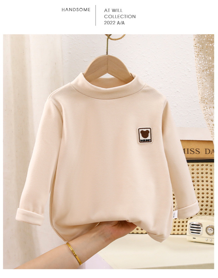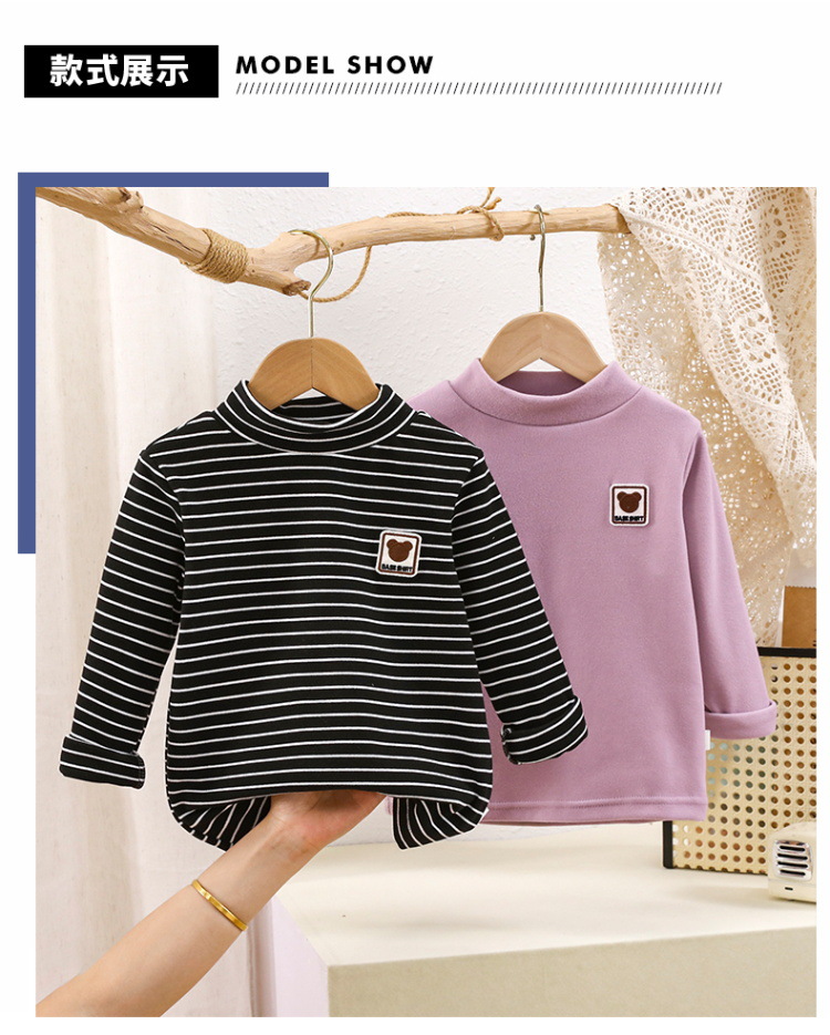어린이 기모 기지 셔츠 가을과 겨울 새로운 두꺼운 따뜻한 아기 티셔츠 걸스 중고 칼라 따뜻한 어린이 착용