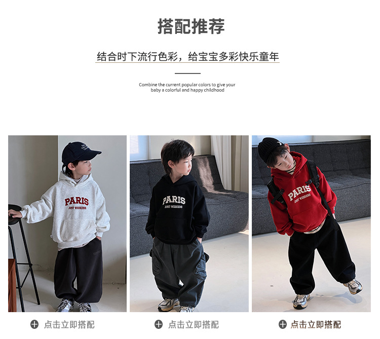 마이클시 아동복 남아용 스웨트셔츠 기모 두꺼운 가을 겨울 신상품 중대형 아동용 한국 스타일 일체형 기모 후드티스토어 가기