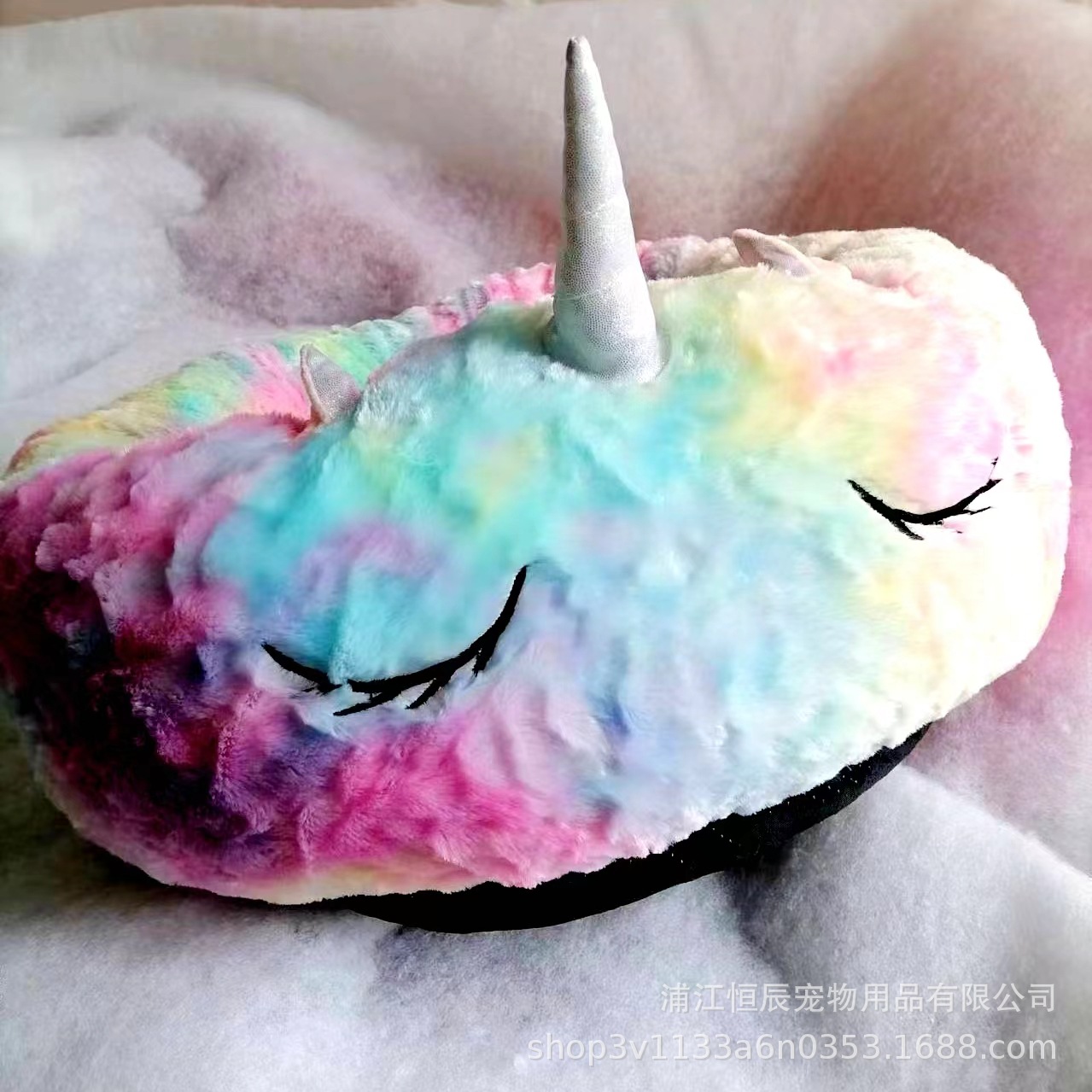 애완 동물을 위한 다채로운 유니콘 사육장 고양이 사육장 봉제 둥근 애완 동물 사육장 개 침대 겨울 개 매트 애완 동물 침대