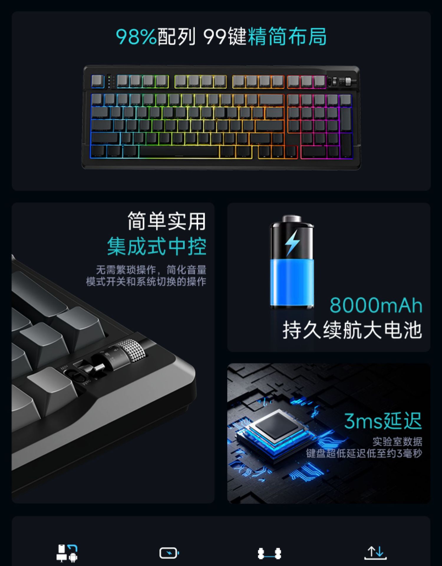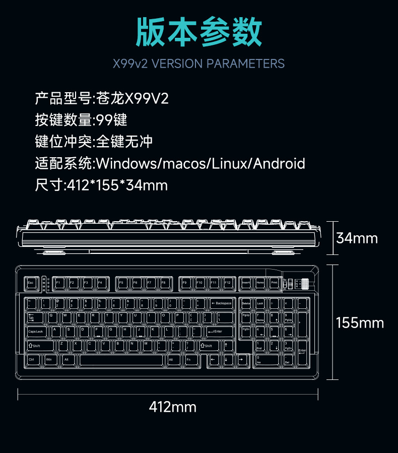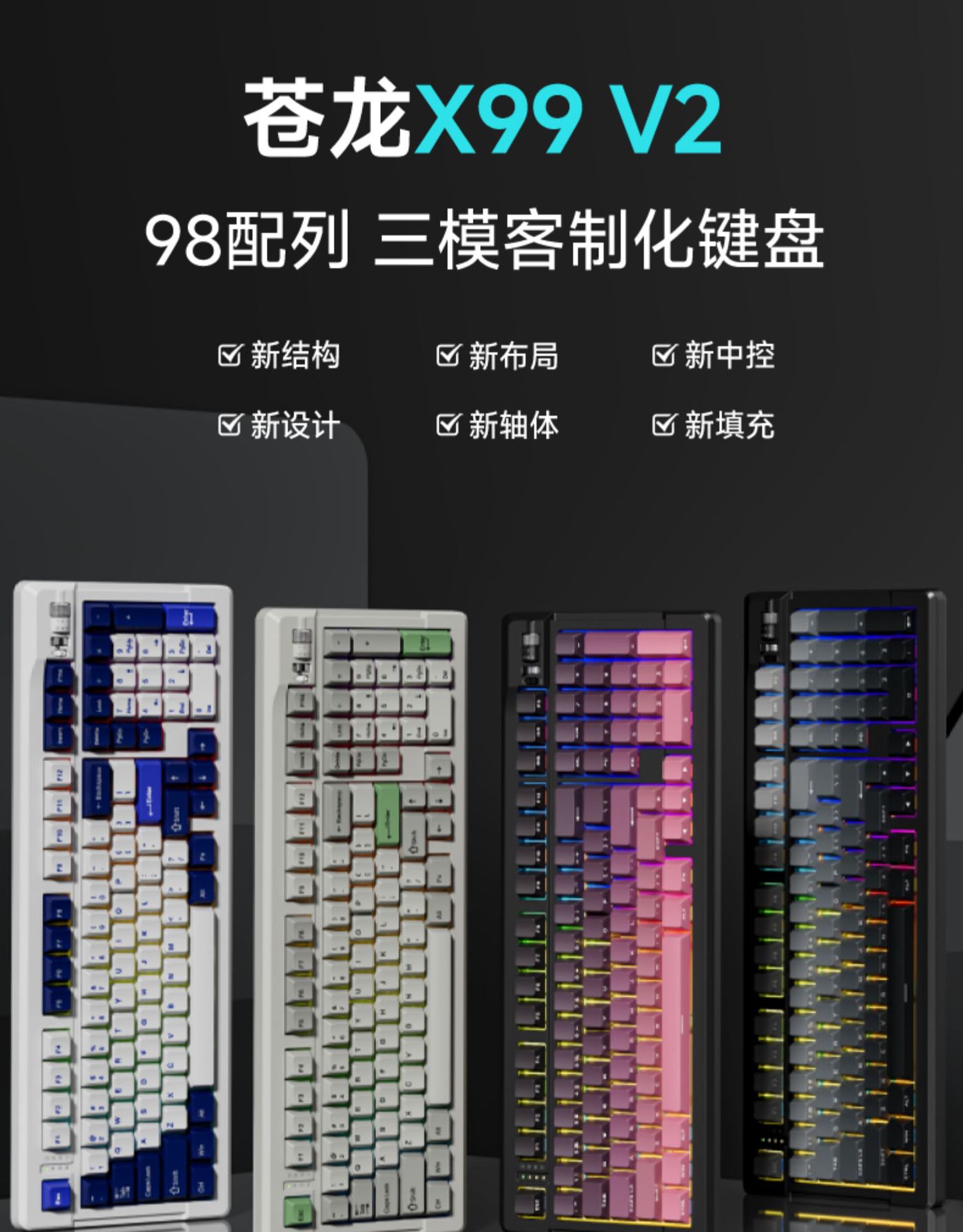 Forerunner X99v2 Canglong 맞춤형 기계 키보드 무선 블루투스 3 모드 e 스포츠 게임 측면 새겨진 키캡스토어 가기