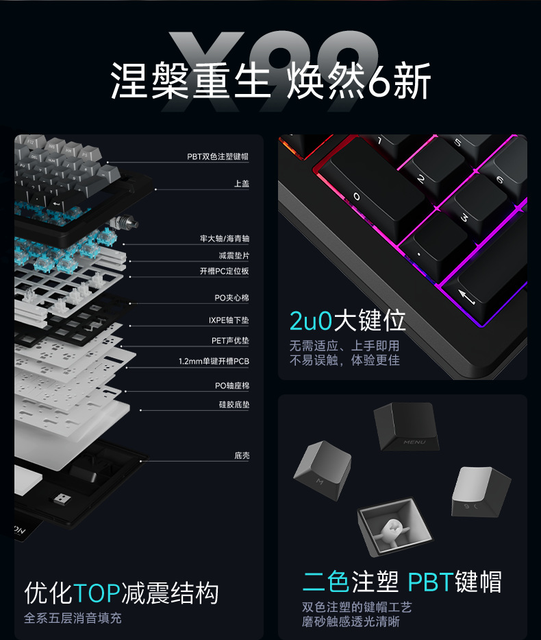 Forerunner X99v2 Canglong 맞춤형 기계 키보드 무선 블루투스 3 모드 e 스포츠 게임 측면 새겨진 키캡