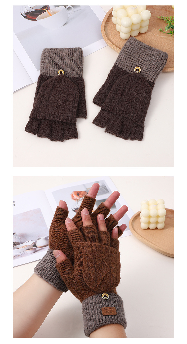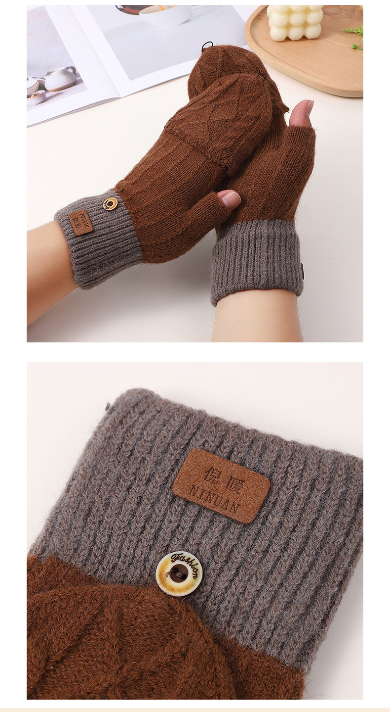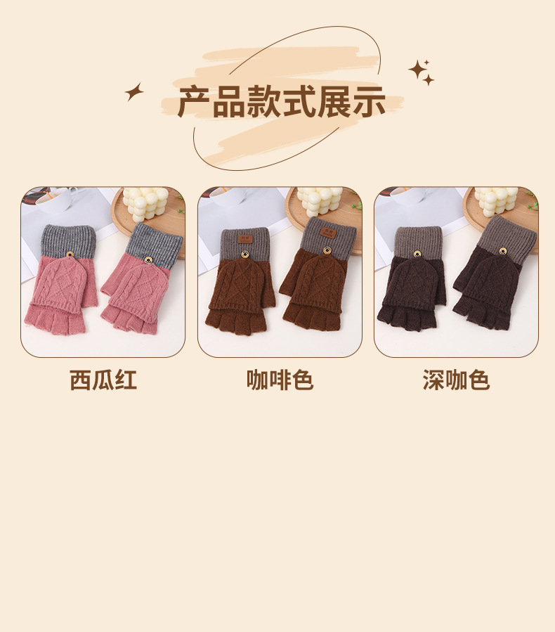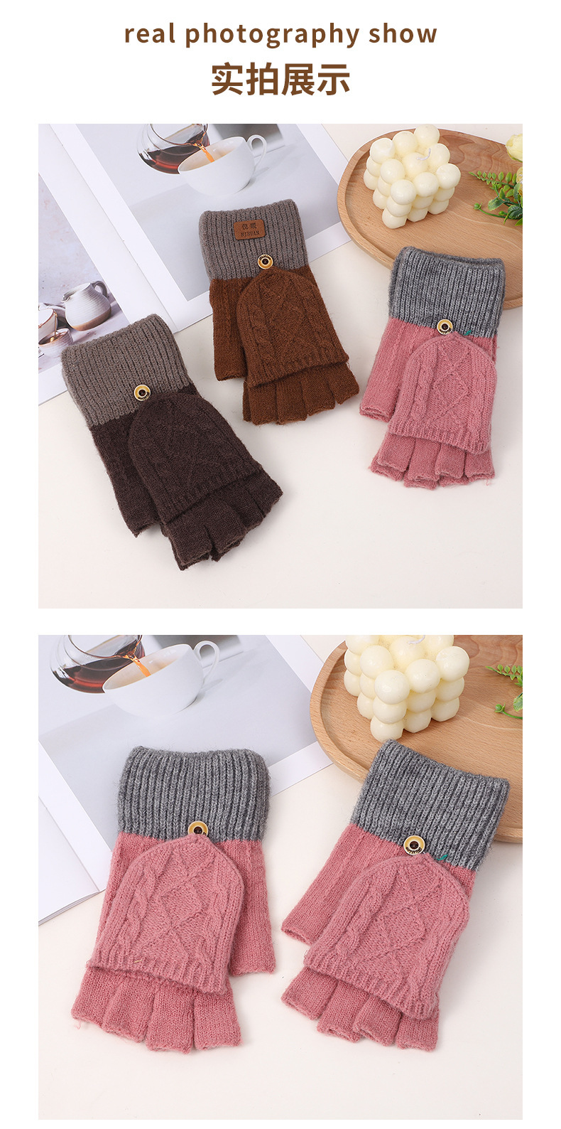 겨울 새 학생 장갑 캐시미어 반 손가락 플랩 장갑 연인 장갑 니트 자카드 따뜻한 장갑 도매