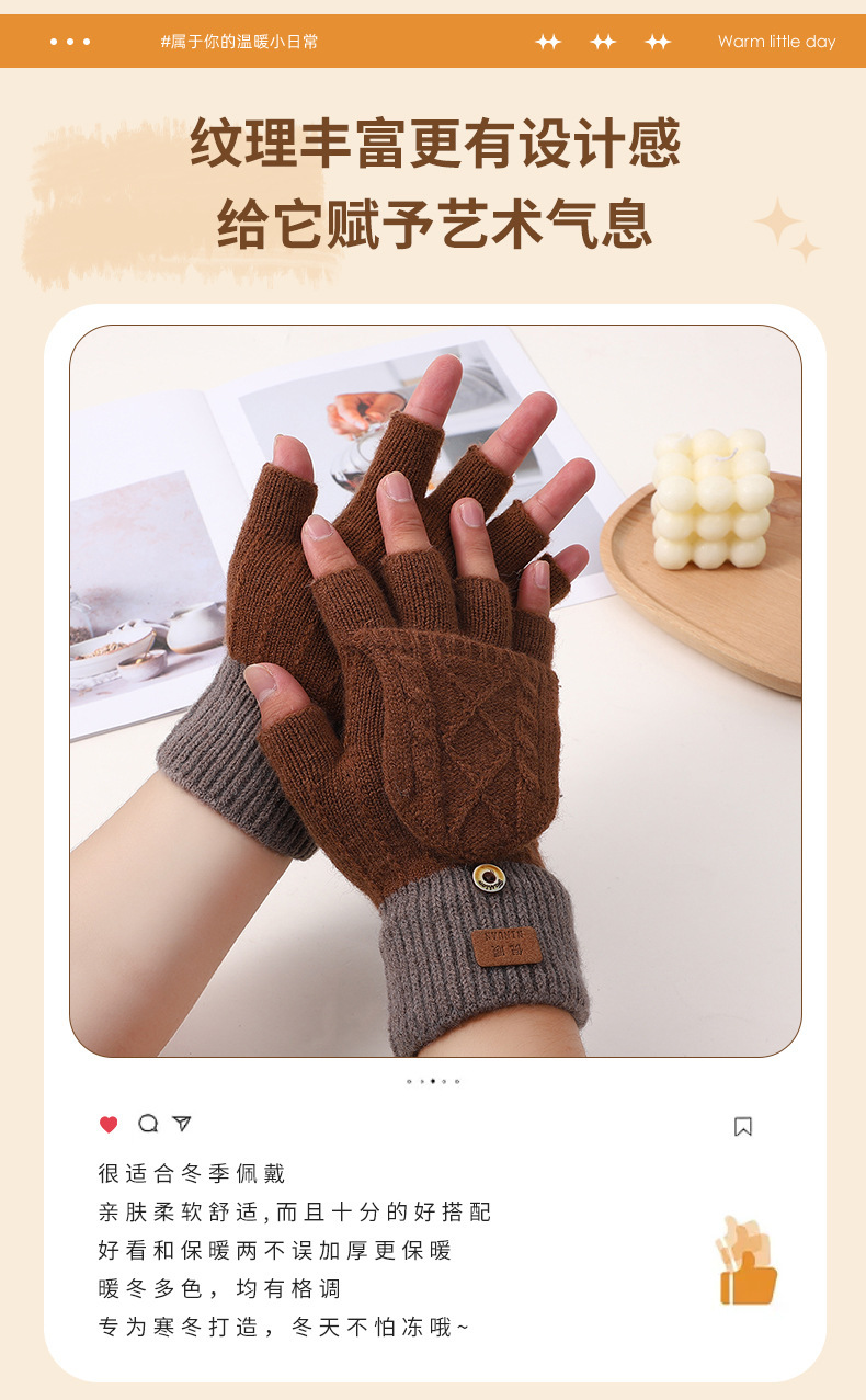 겨울 새 학생 장갑 캐시미어 반 손가락 플랩 장갑 연인 장갑 니트 자카드 따뜻한 장갑 도매스토어 가기