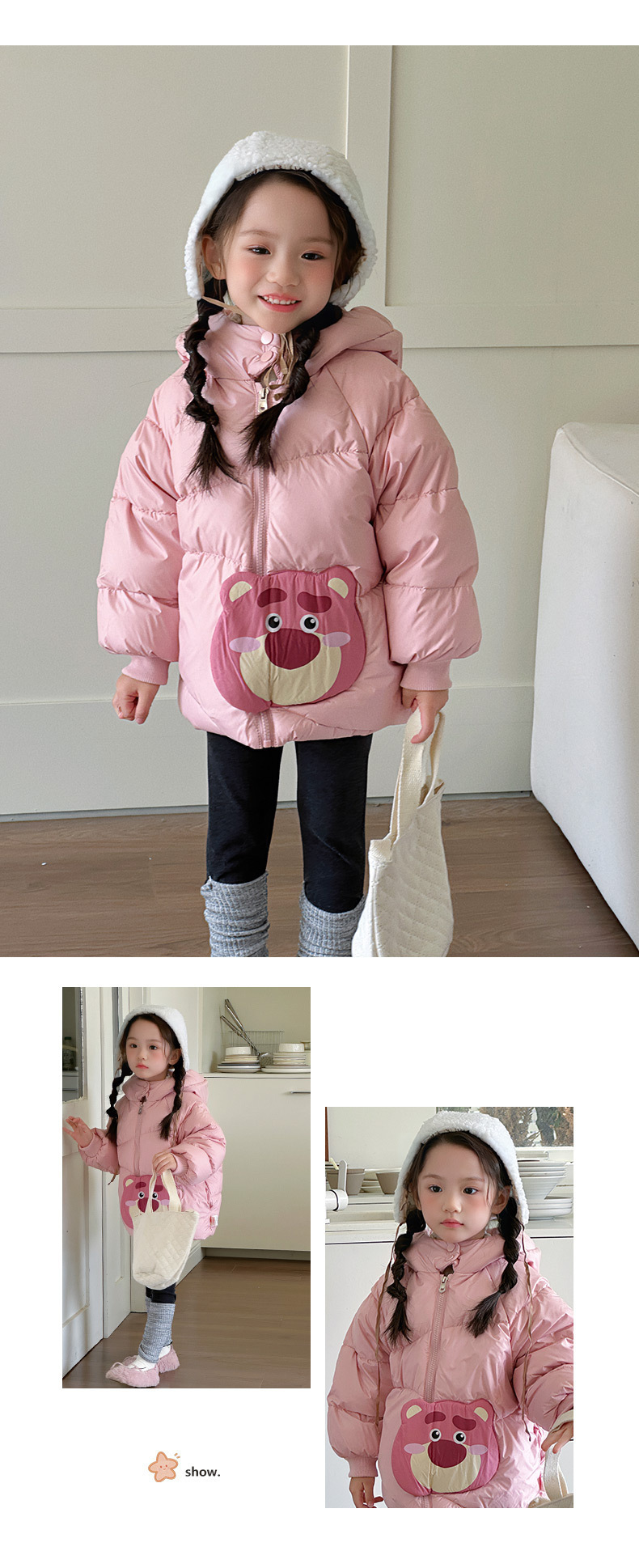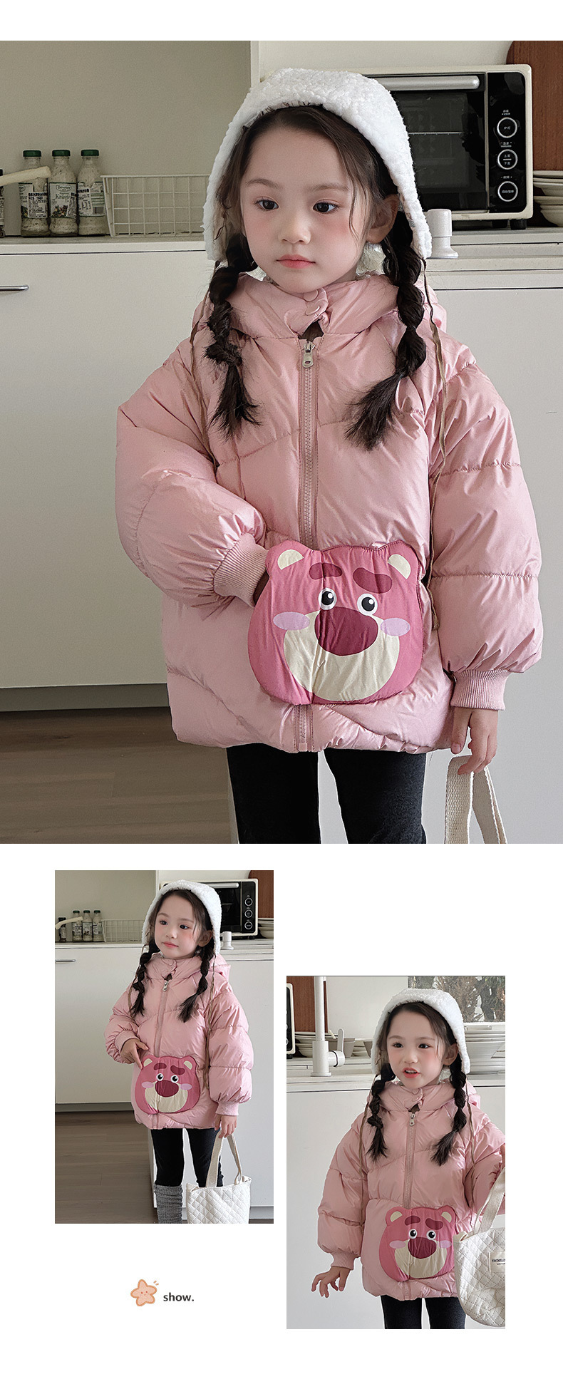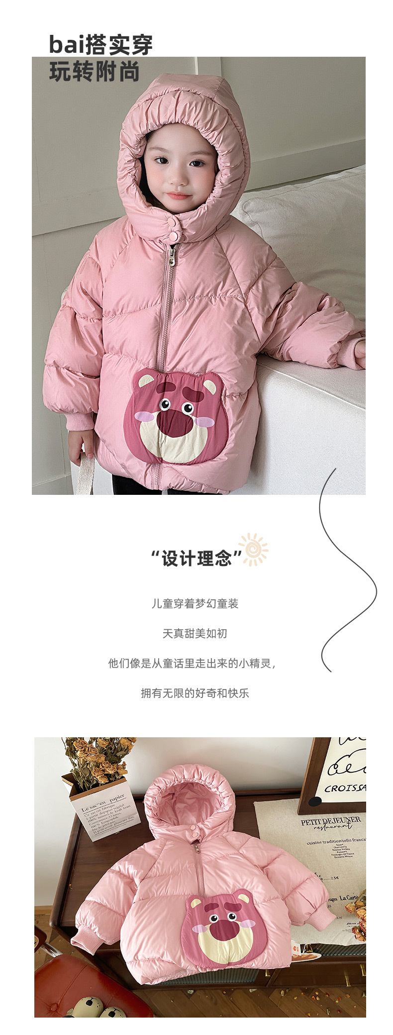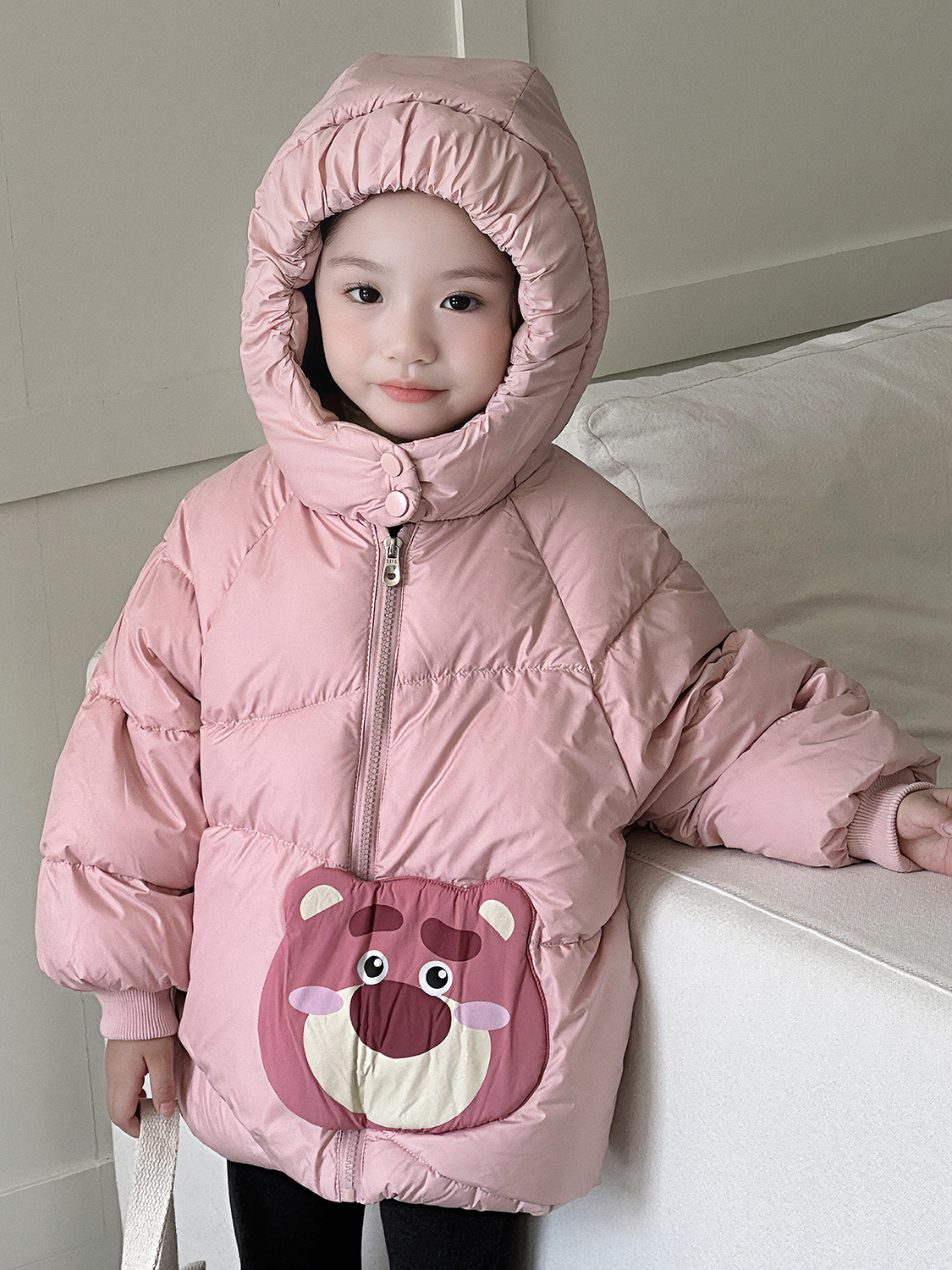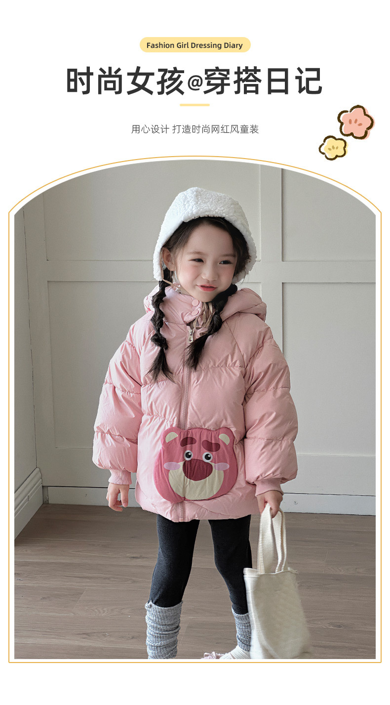 어린이 다운 재킷 2024 겨울 새 소녀 다운 재킷 새로운 GB 90 화이트 덕 다운 베이비 후드 아동용 코트