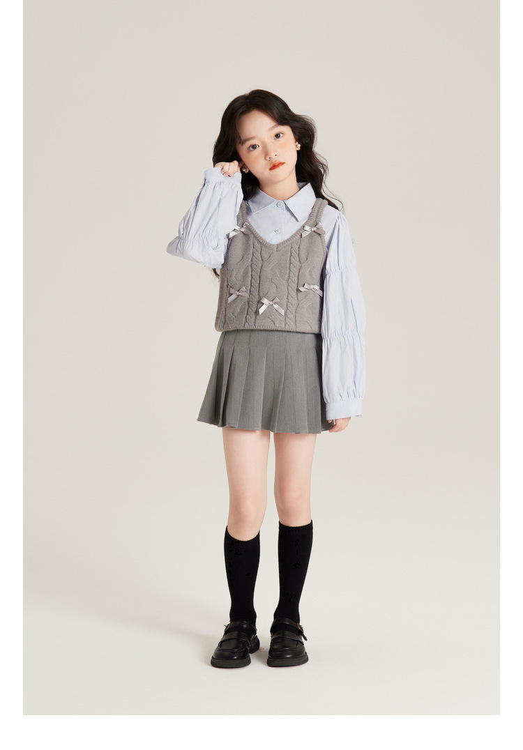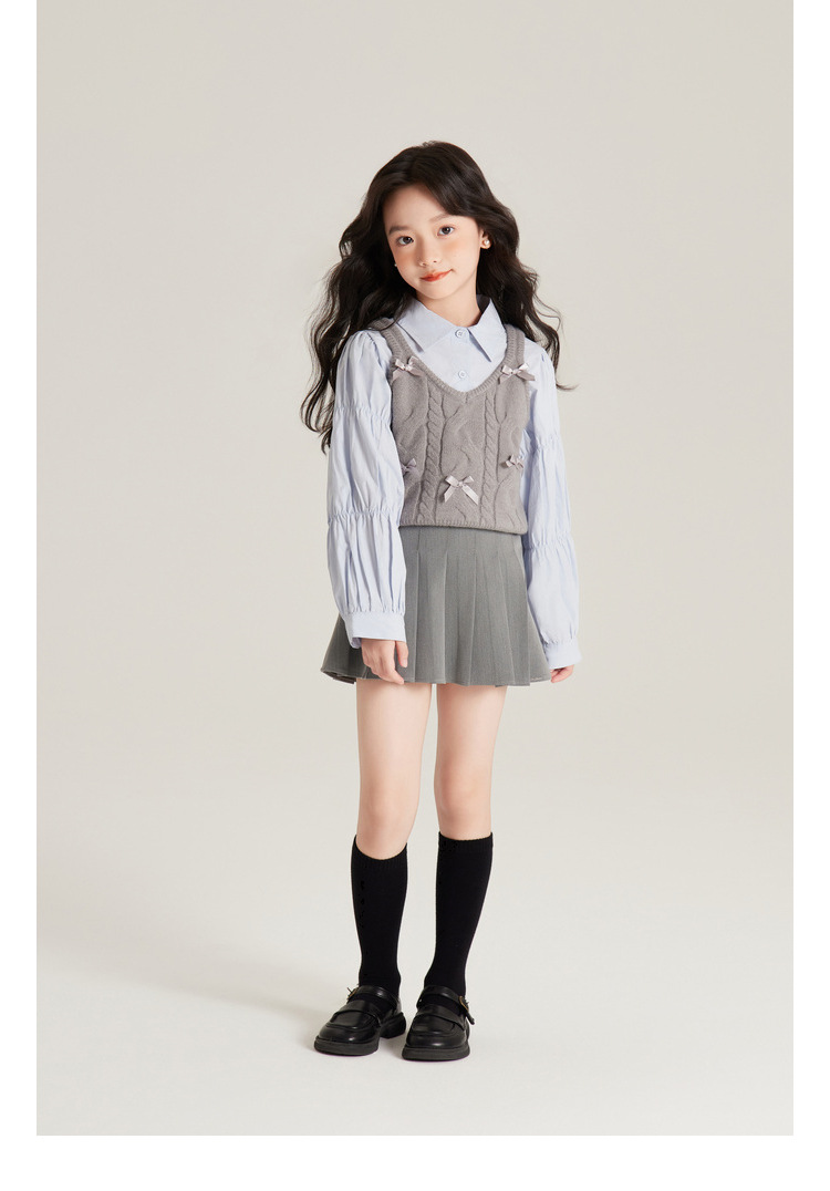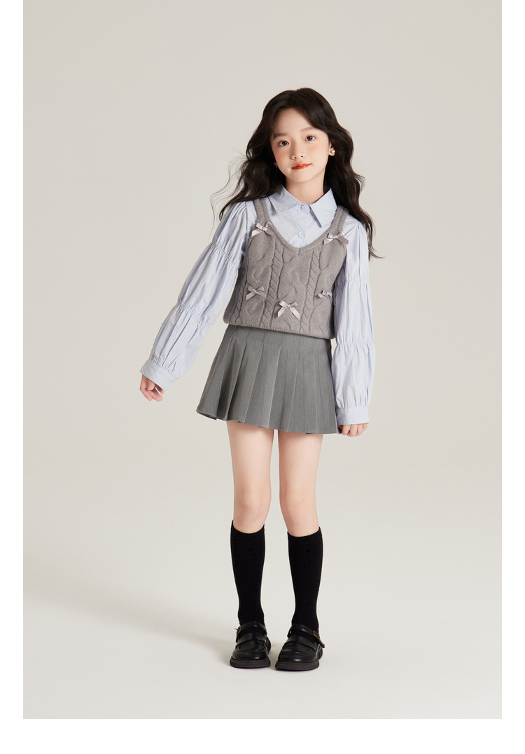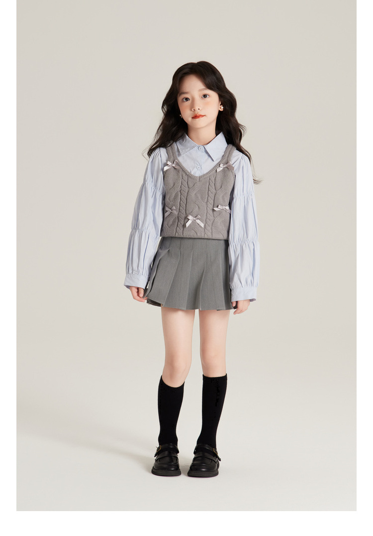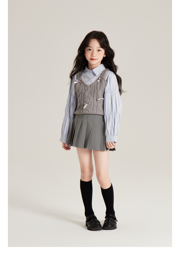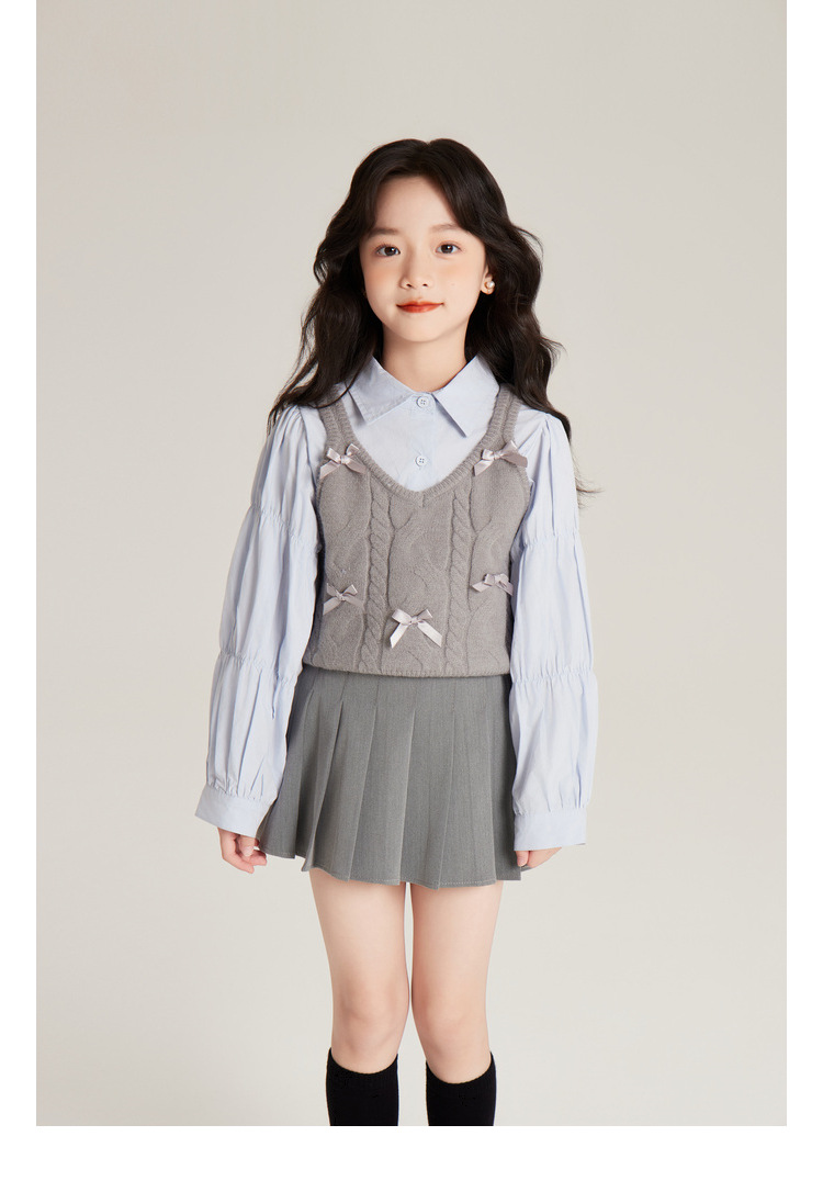 Amybaby 소녀 세트 가을 2024 새로운 프랑스 복고풍 디자인 센스 버블 긴 소매 셔츠