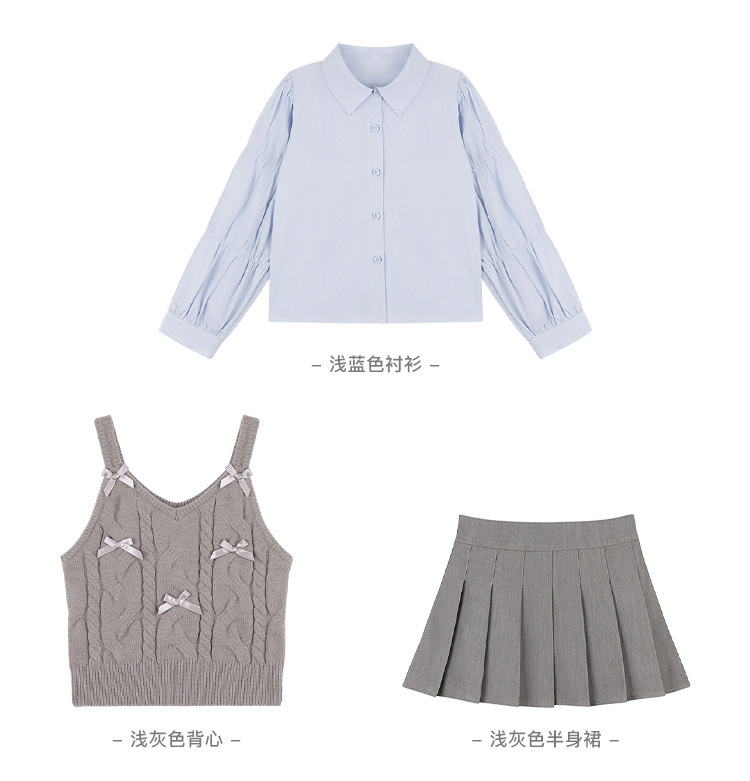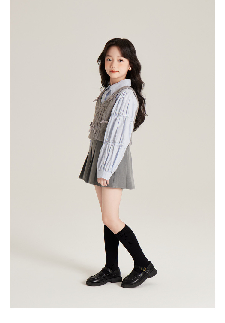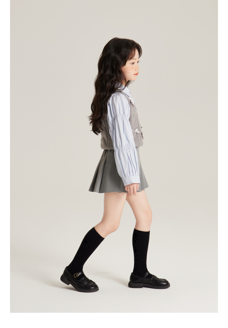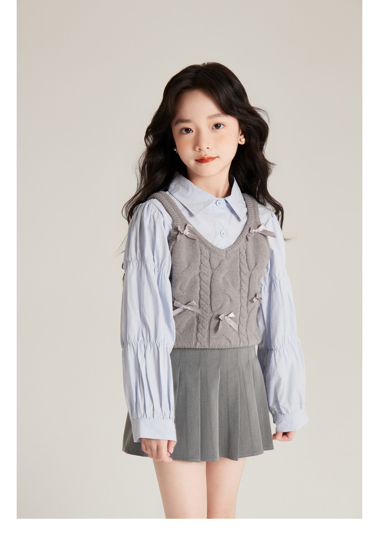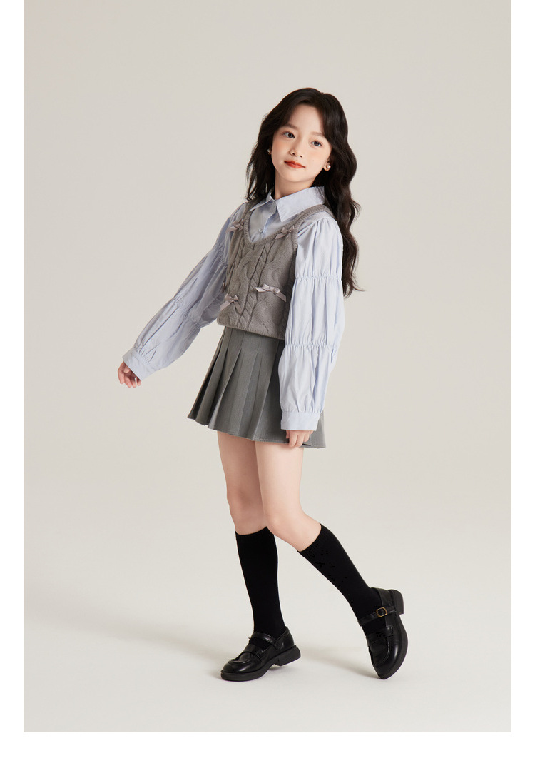 Amybaby 소녀 세트 가을 2024 새로운 프랑스 복고풍 디자인 센스 버블 긴 소매 셔츠스토어 가기