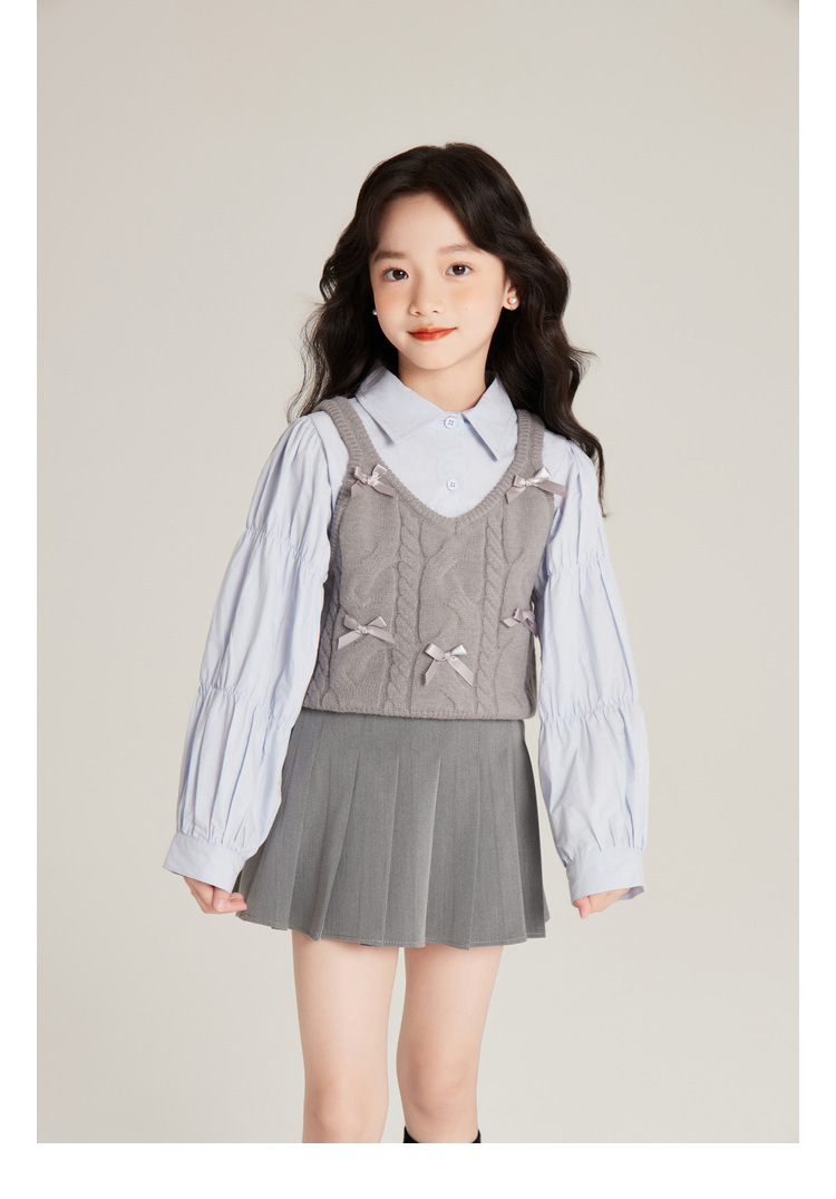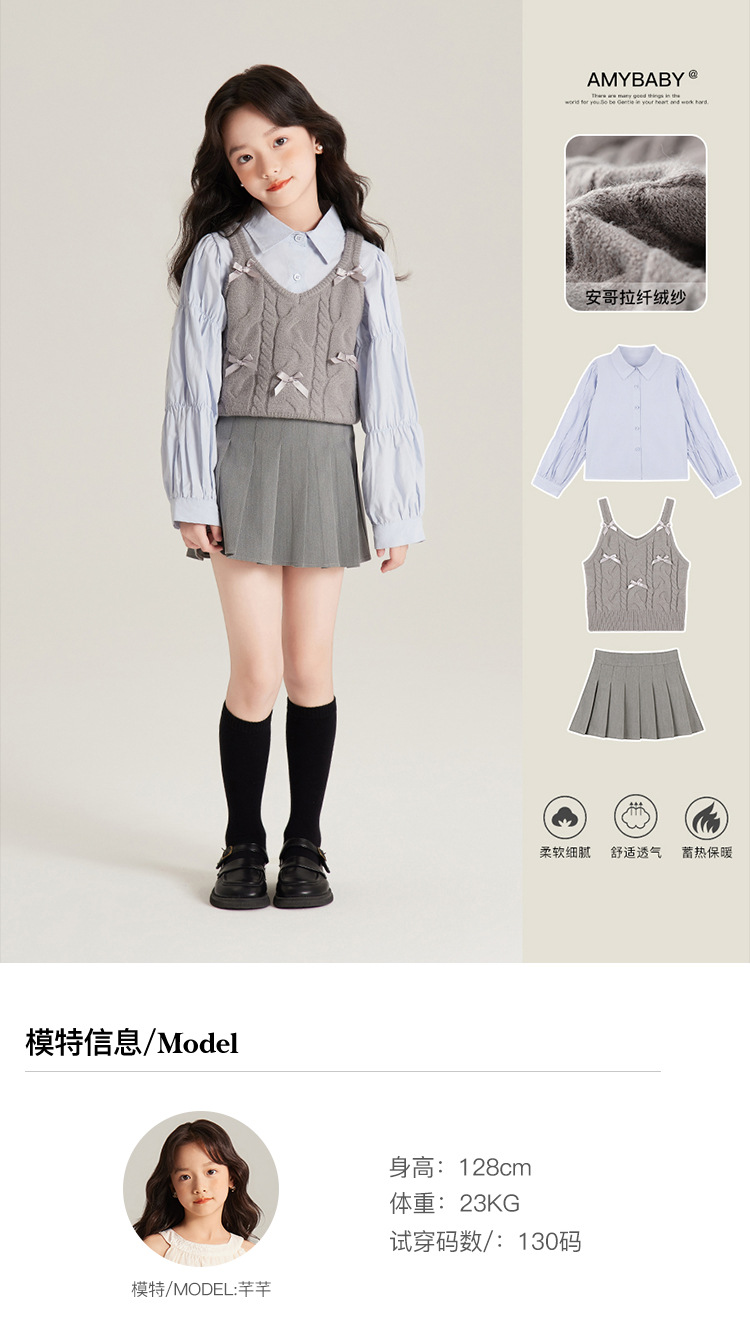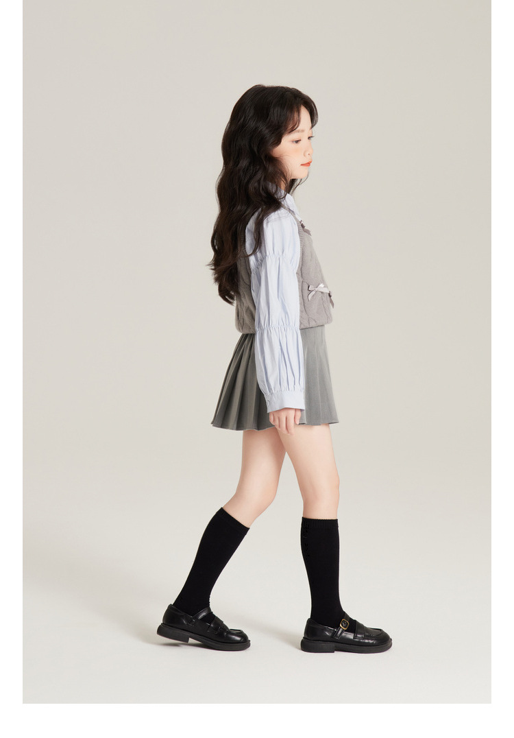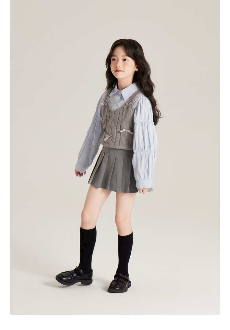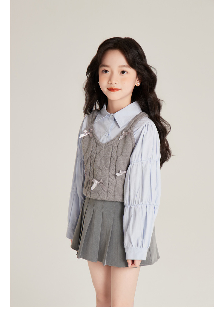 Amybaby 소녀 세트 가을 2024 새로운 프랑스 복고풍 디자인 센스 버블 긴 소매 셔츠스토어 가기