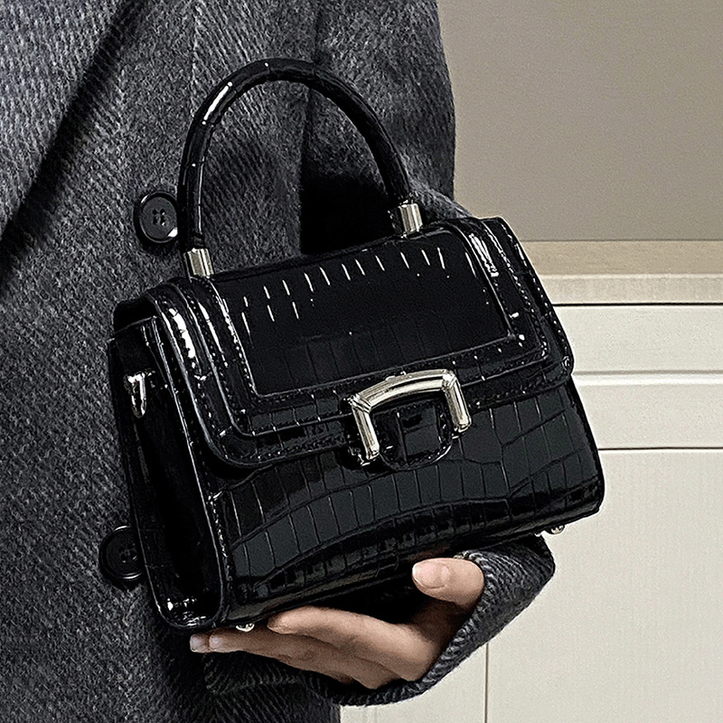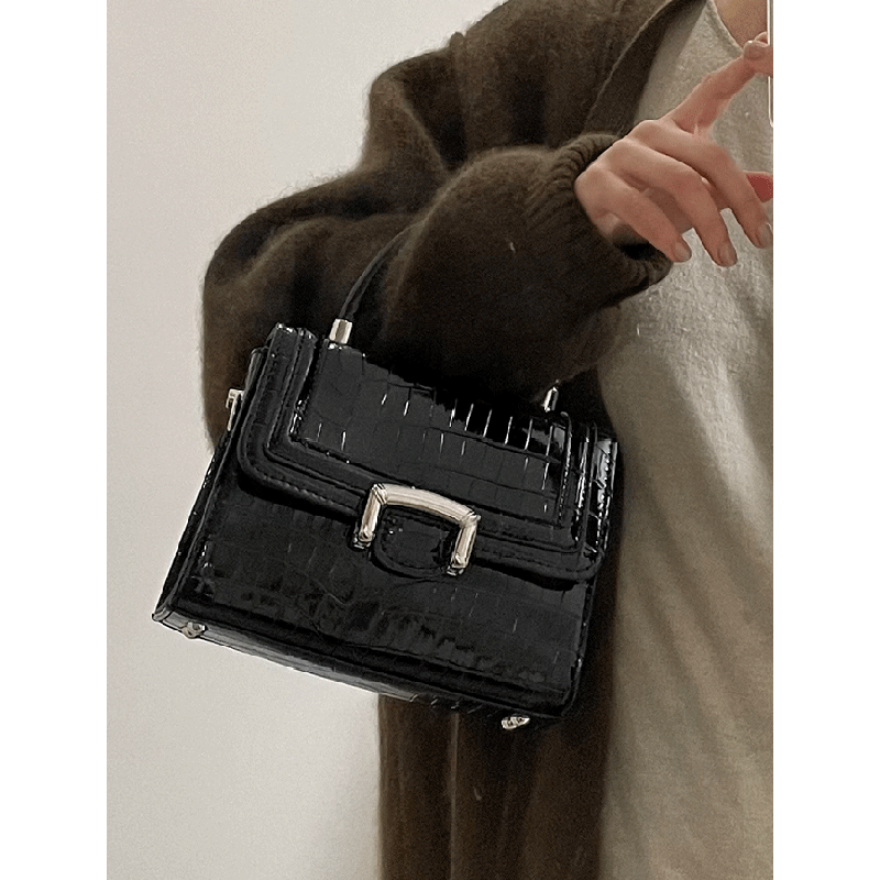 가방 여성의 2024 새로운 하이 엔드 센스 악어 잠금 휴대용 작은 광장 가방 캐주얼 올 매치 숄더 크로스 바디 백
