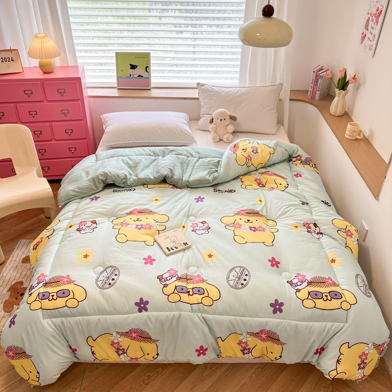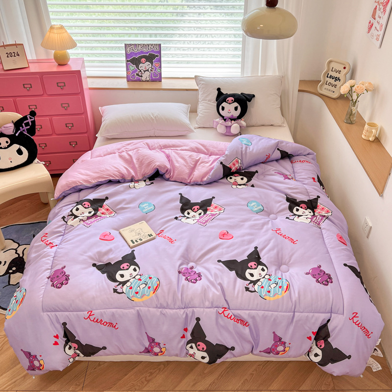 산리오 씻은 면 이불 만화 두꺼운 따뜻한 겨울 퀼트 코어 유치원 기숙사 에어컨 이불 봄과 가을 이불