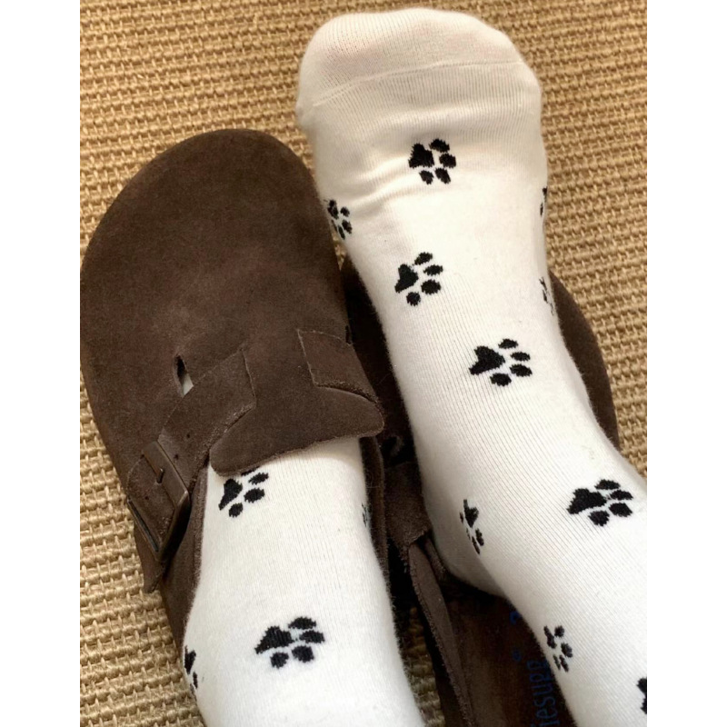 한국 스타일 s 스타일 귀여운 강아지 발 인쇄 양말 여성의 중간 튜브 양말 흑백 회색 틈새 디자인 순수한면 쌓인 양말스토어 가기