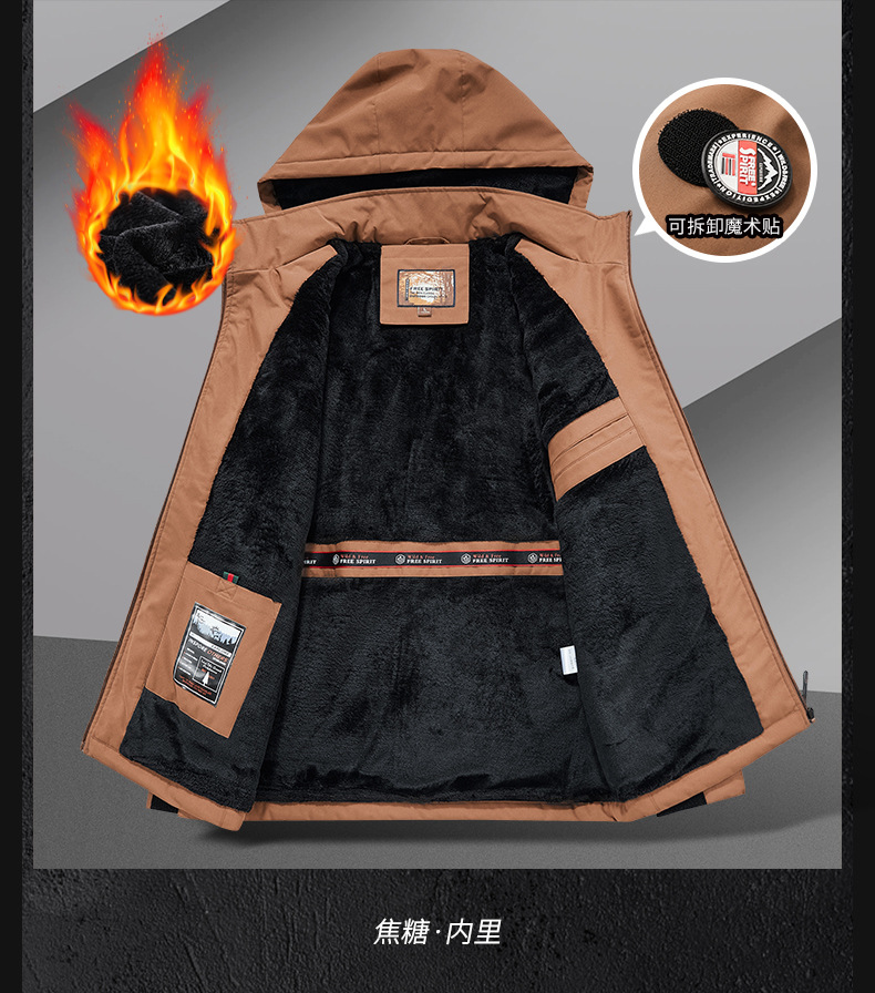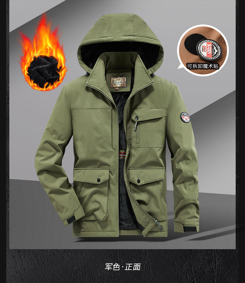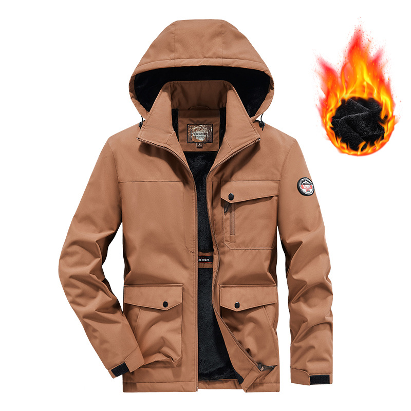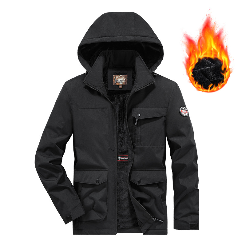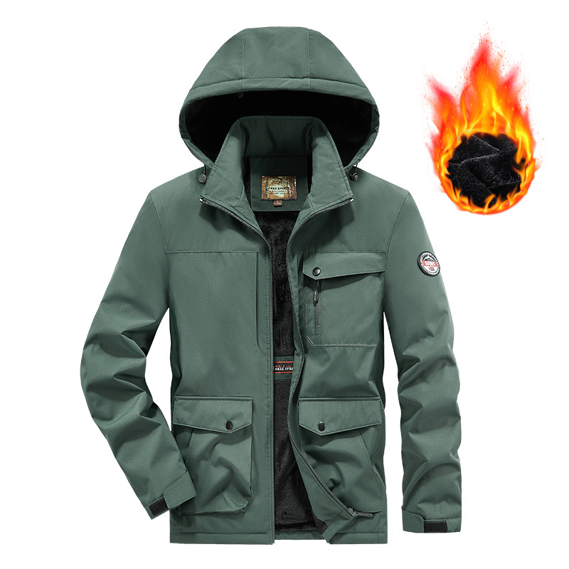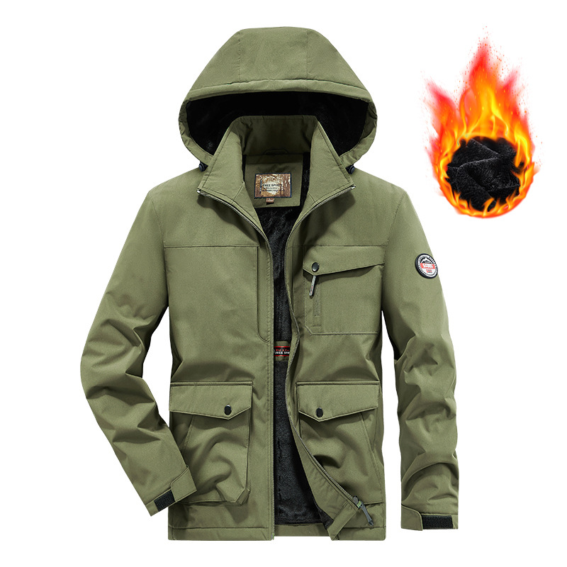 국경 간 플러스 사이즈 겨울 방풍 멀티 가방 작업복 재킷 남자 양털 자켓 남자 러시 옷 남자 후드 윈드브레이커