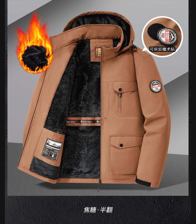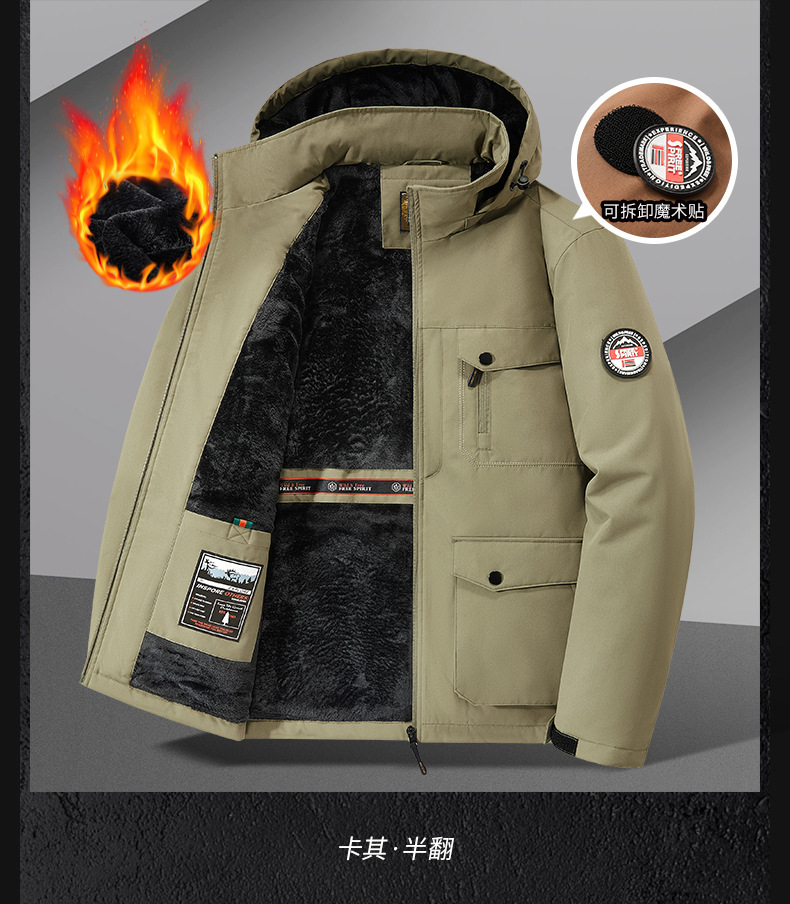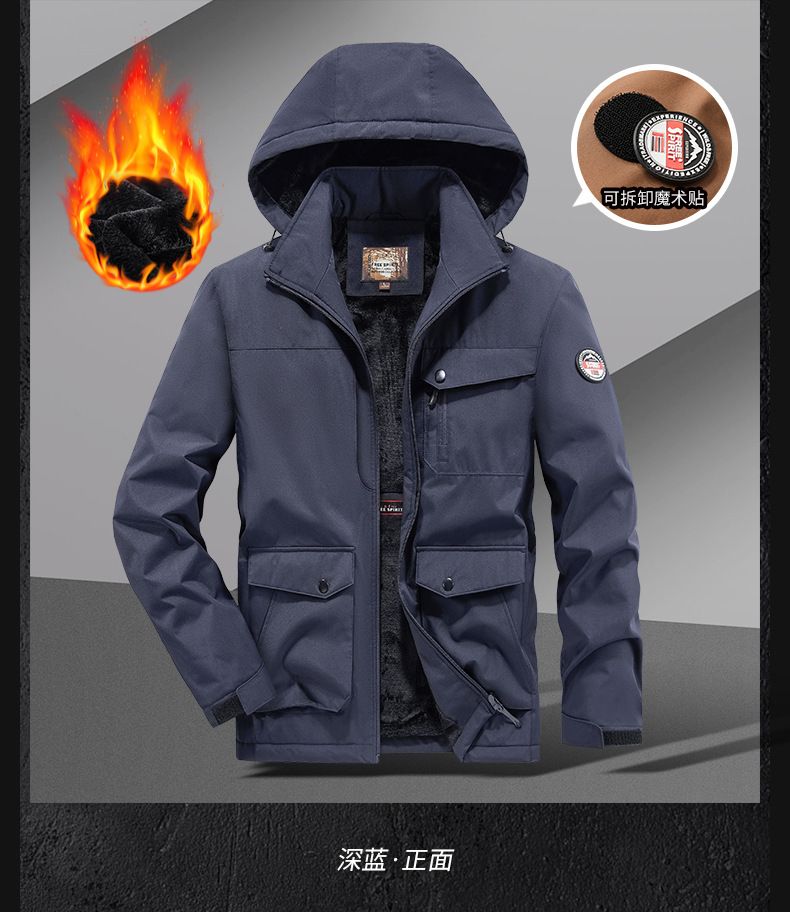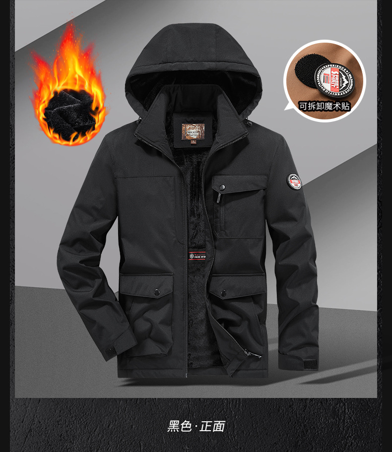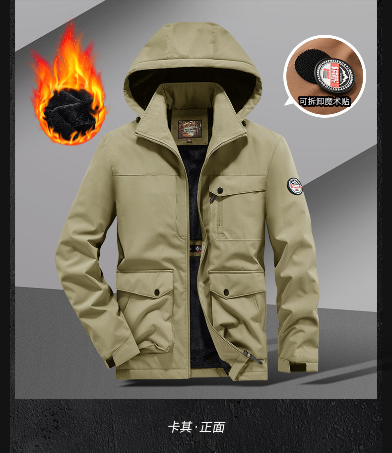 국경 간 플러스 사이즈 겨울 방풍 멀티 가방 작업복 재킷 남자 양털 자켓 남자 러시 옷 남자 후드 윈드브레이커