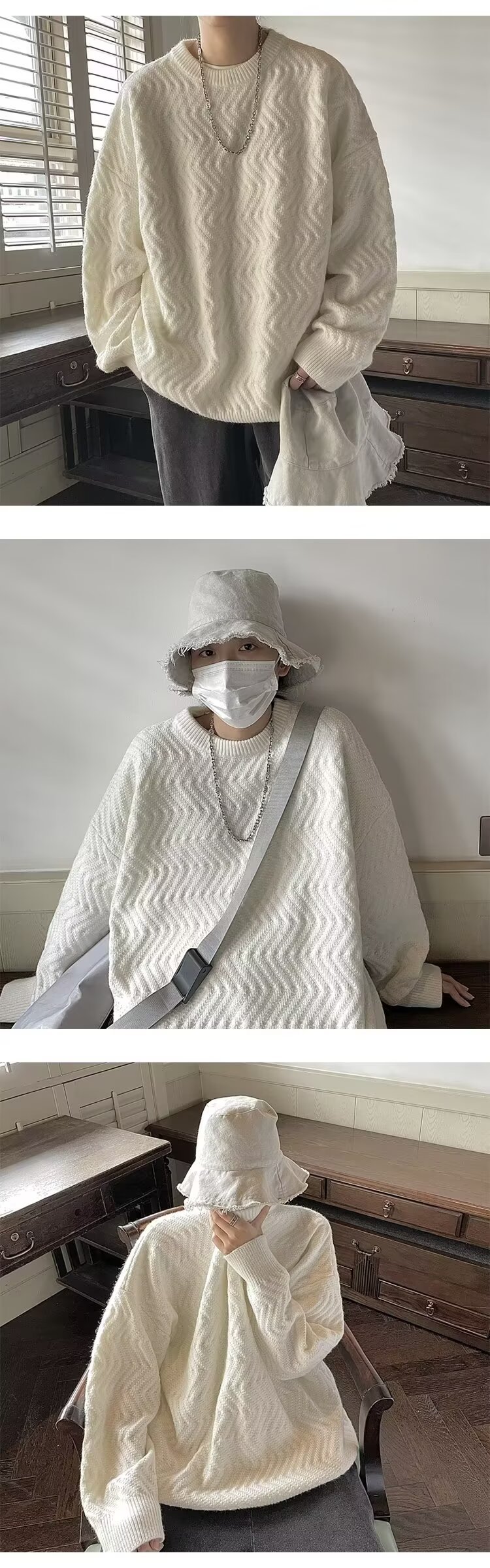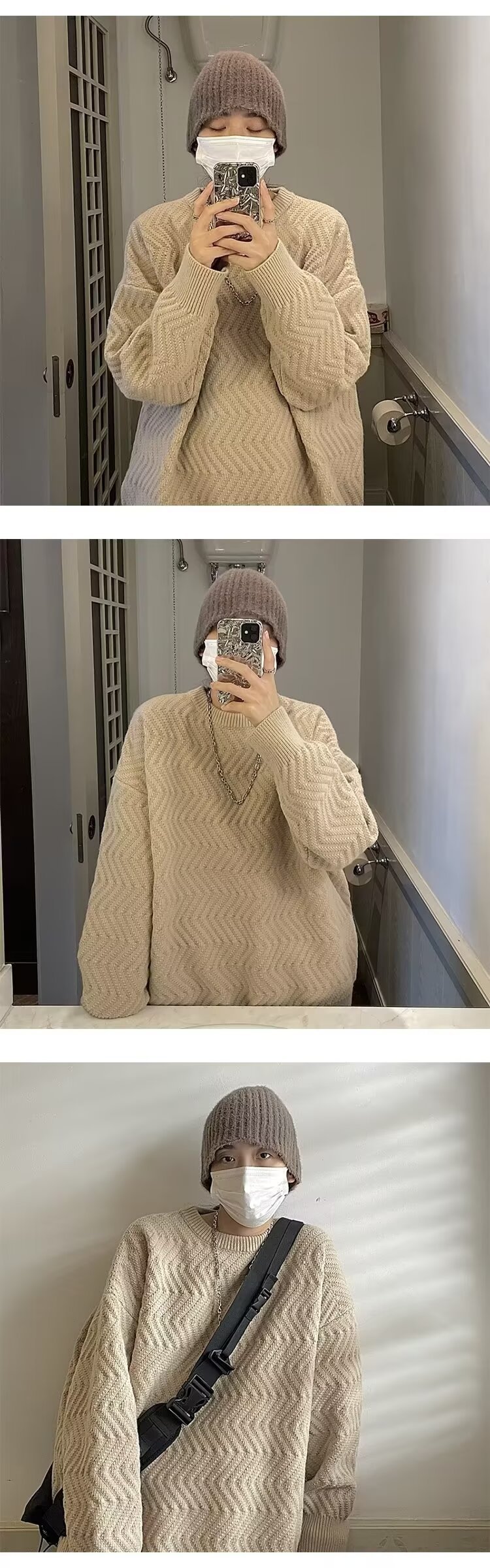 부드러운 왁스 스타일 부드러운 우유 스웨터 남자의 겨울 두꺼운 일본 니트 스웨터 가을과 겨울 게으른 스타일 한국 스타일 하이 엔드 센스 재킷스토어 가기