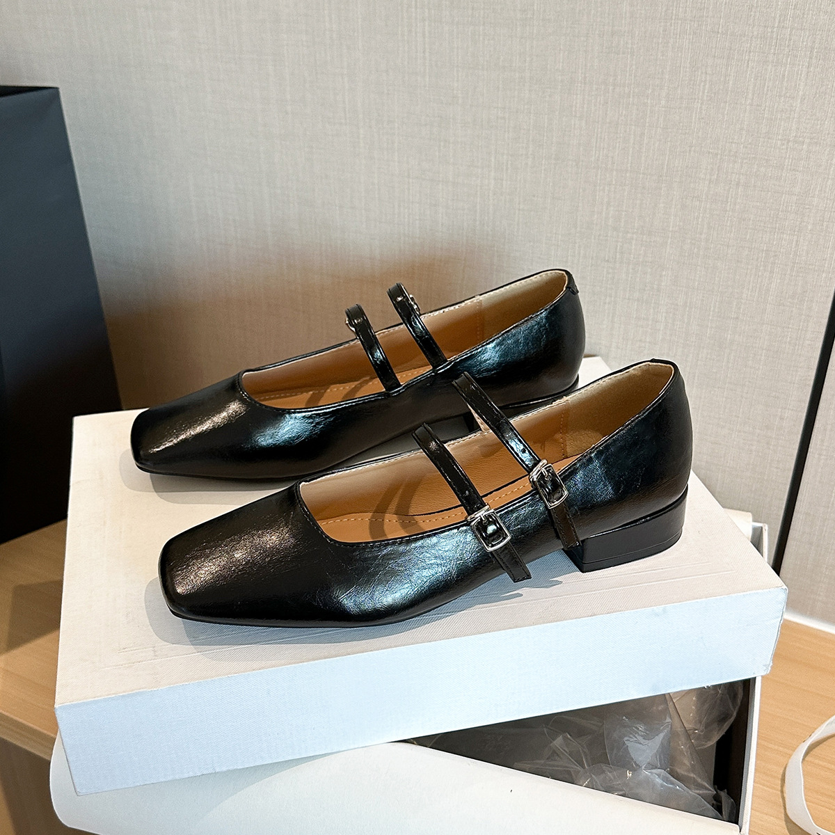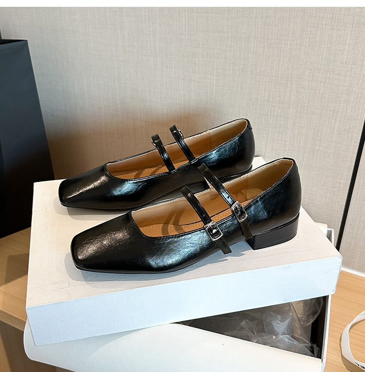 2123-5 쌍 버클 스트랩 스퀘어 두꺼운 메리 제인 신발 여성의 가을 새로운 편안한 로우 힐 입 싱글 신발