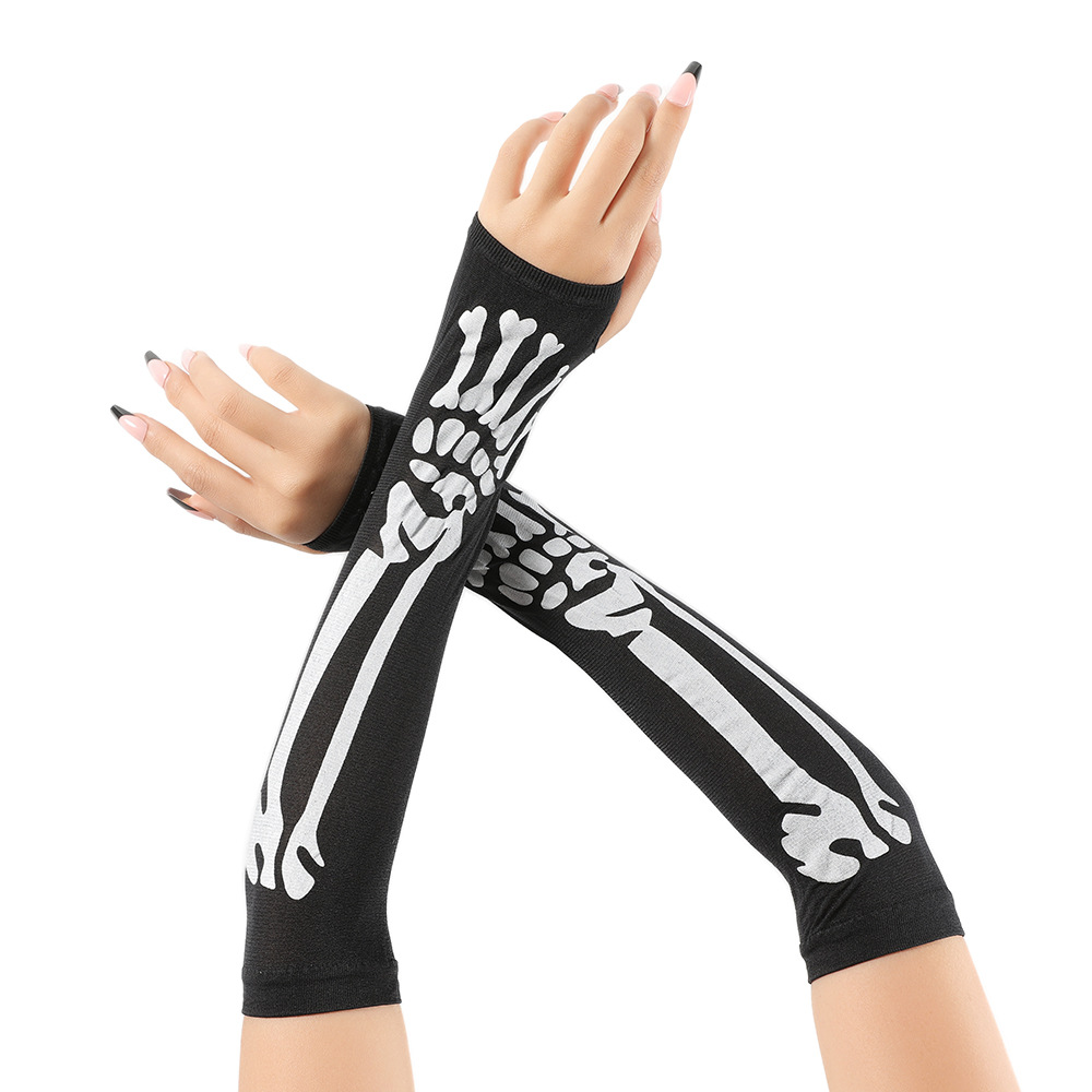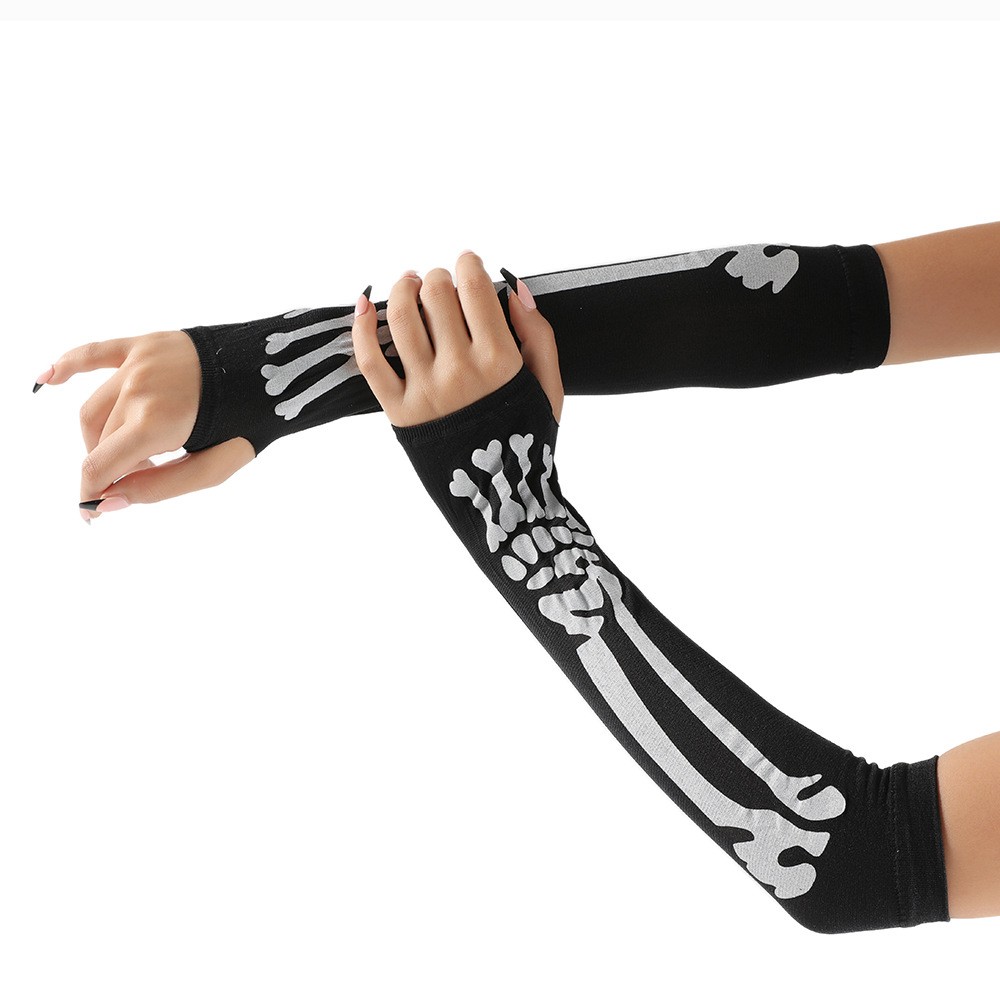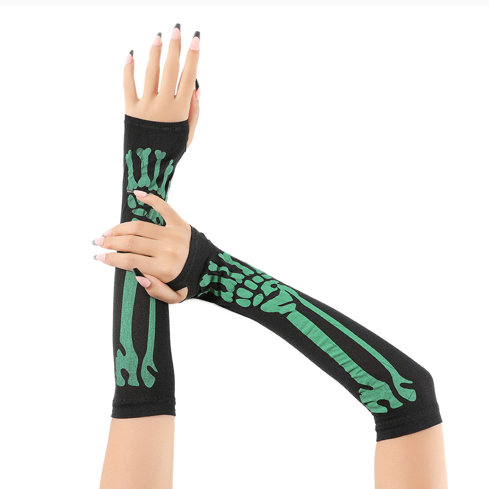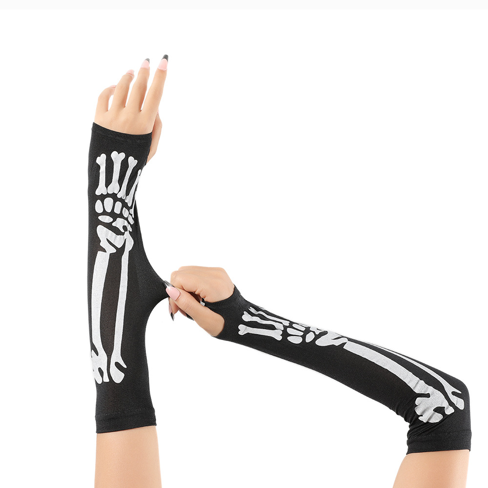 국경 간 유럽과 미국의 해골 긴 장갑 니트 패션 블랙 탄성 할로윈 카니발 장갑 공장 아울렛