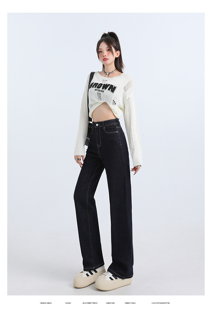 타닌 블루 스트레이트 레그 청바지 여성의 가을 새로운 미국 스타일 디자인 감각 느슨한 올매치 짧은 좁은 와이드 레그 바지스토어 가기