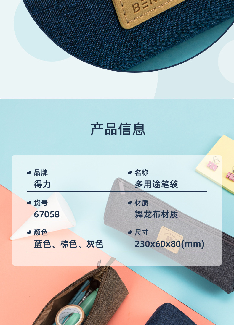 델리 67058 Xueba 삼각형 다목적 연필 케이스 (연필 케이스 초등학생 천 가방 문구 상자 대용량 다기능