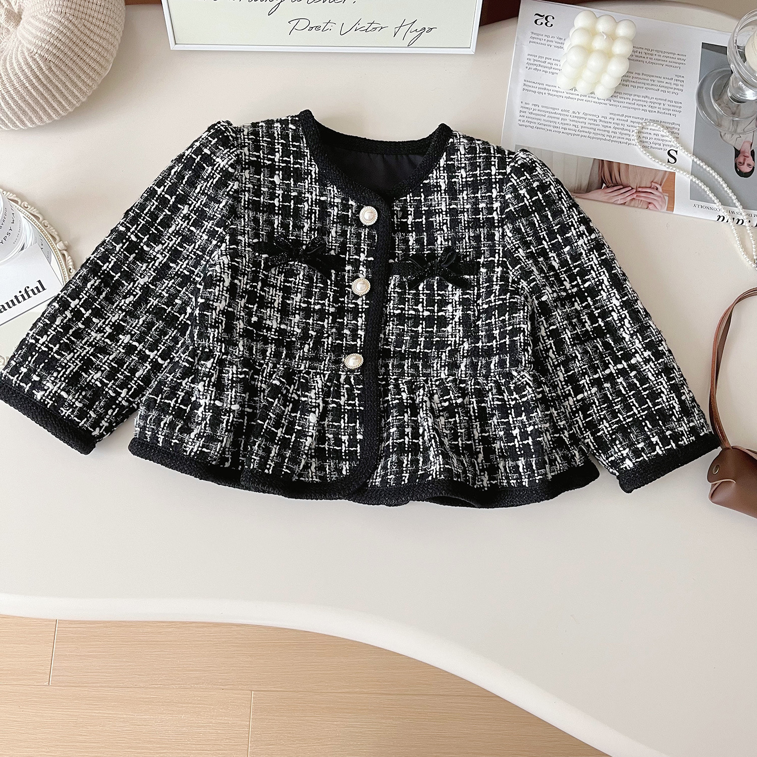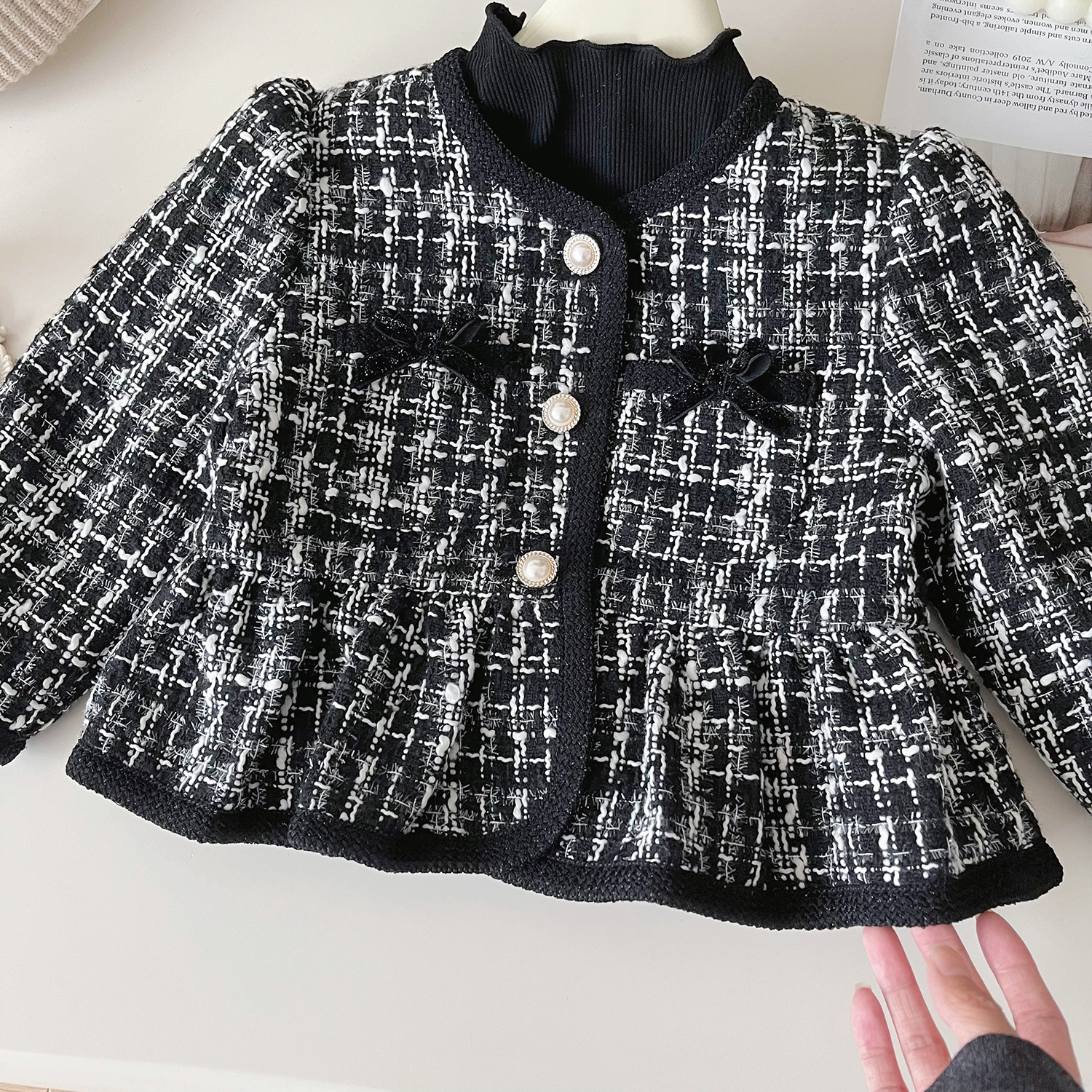 여자 코트 2024 가을 새로운 한국 트위드 샤넬 스타일 짧은 코트 아기 우아한 검은 코트스토어 가기