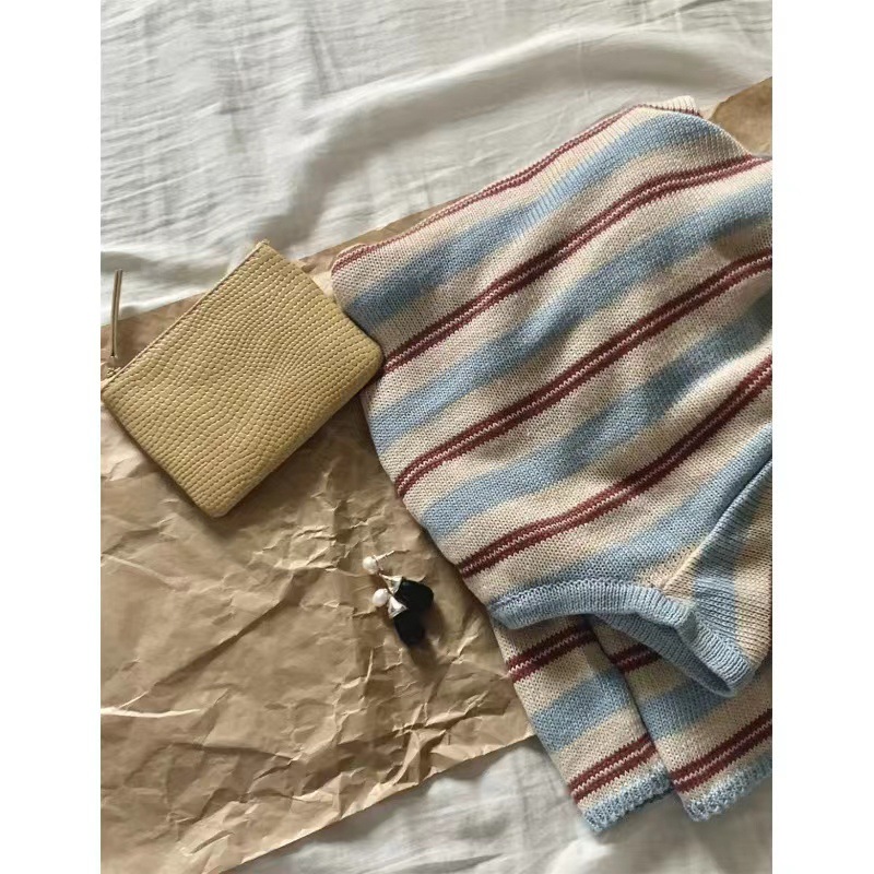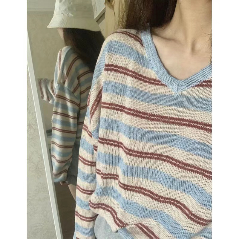 스트라이프 긴팔 티셔츠 여성용 Ins 트렌디 한 초가을 디자인 센스 니쉬 V 넥 루즈 슬림 니트 베이스 셔츠 탑스토어 가기