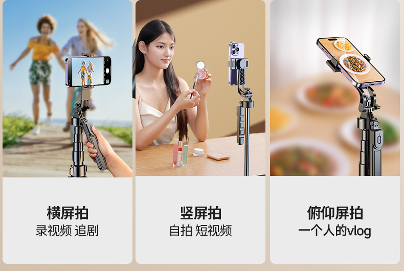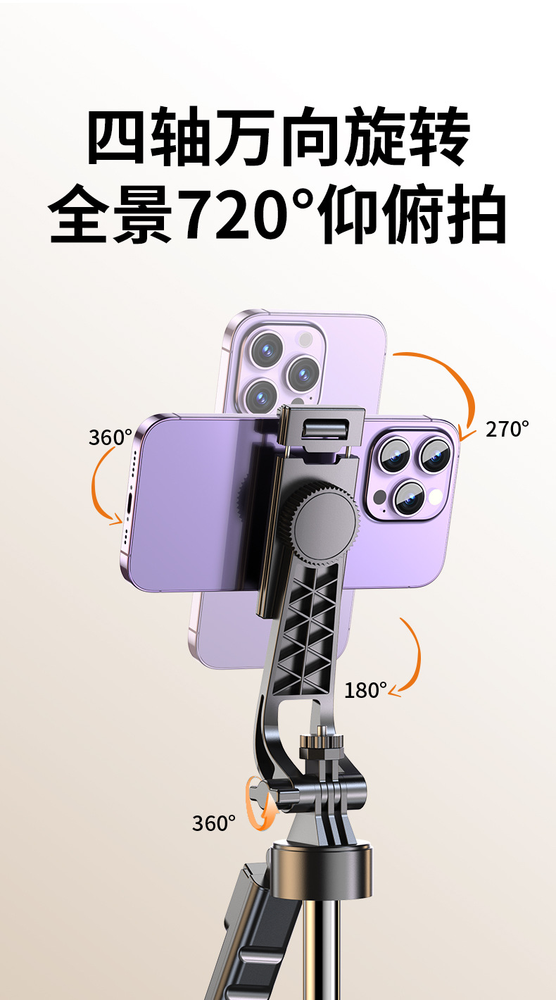 휴대 전화 셀카 스틱 블루투스 셀카 여행 사진 4 축 안티 쉐이크 짐벌 삼각대 바닥 휴대 전화 브래킷