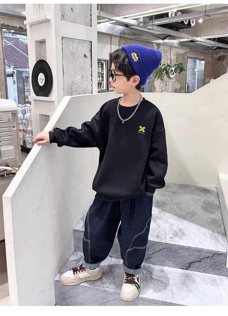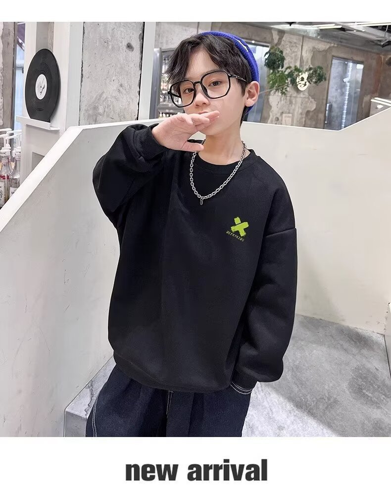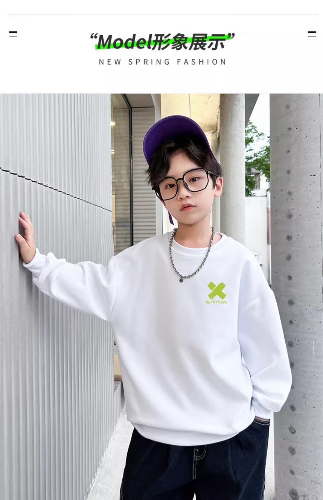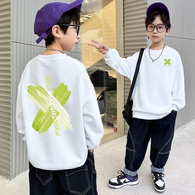 어린이 착용 소년 운동복 가을 2024 새로운 스타일 튀김 거리 한국 스타일 큰 소년 잘 생긴 서양 긴 소매 티셔츠 봄과 가을
