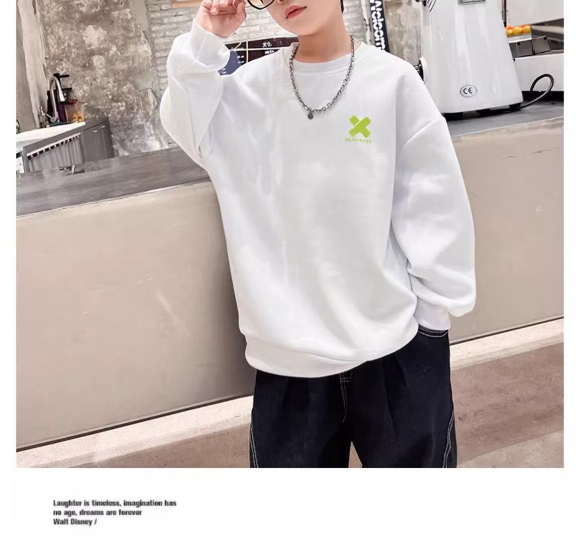 어린이 착용 소년 운동복 가을 2024 새로운 스타일 튀김 거리 한국 스타일 큰 소년 잘 생긴 서양 긴 소매 티셔츠 봄과 가을스토어 가기