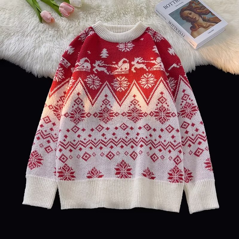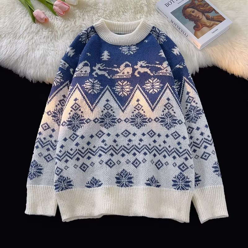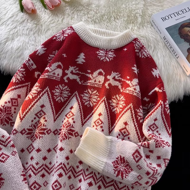 크리스마스 스웨터 남자의 느슨한 겉옷 게으른 스타일 니트웨어 가을 및 겨울 패션 브랜드 올 매치 라운드 넥 풀오버 스웨터스토어 가기