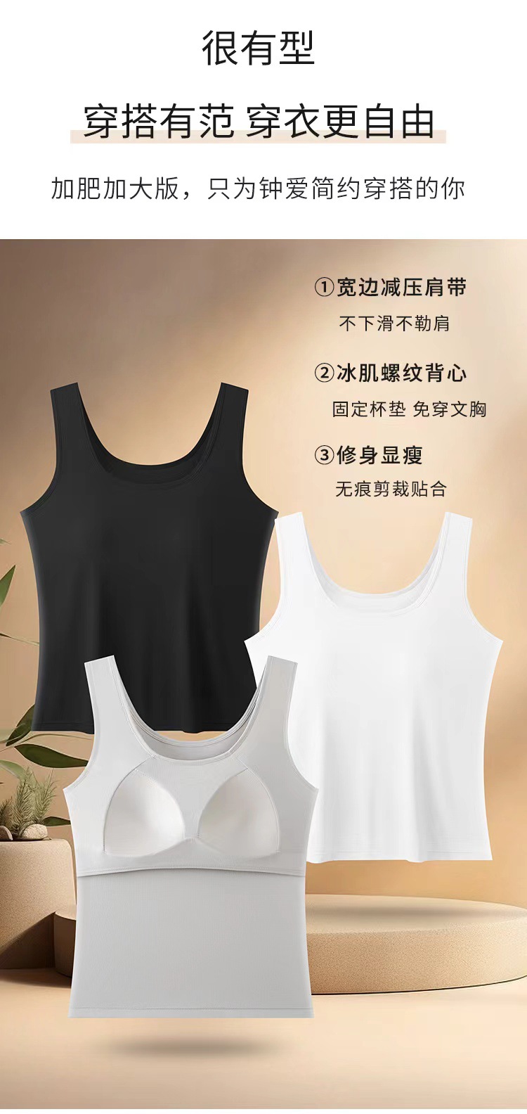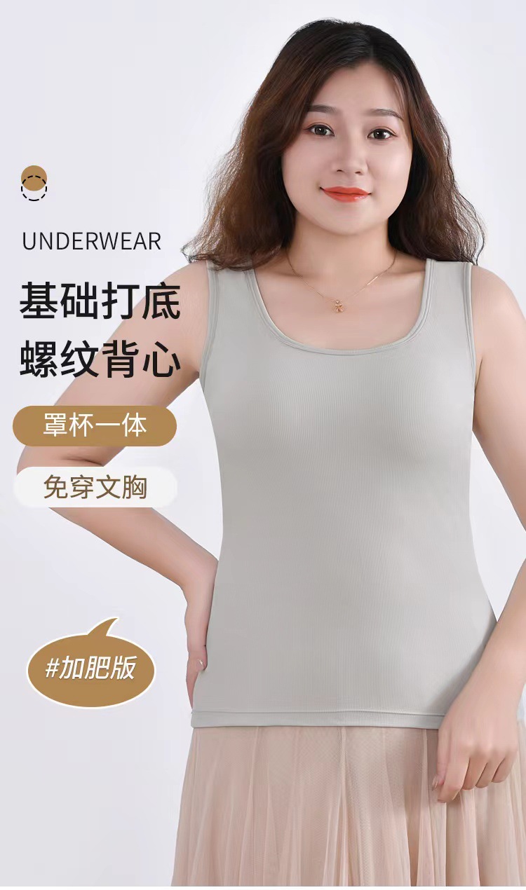 통통녀 독점 Bottoming Threaded Camisole 여성용 벨트 가슴 패드 플러스 버전 탑 Bracing 안티 범프 편안한 인테리어스토어 가기