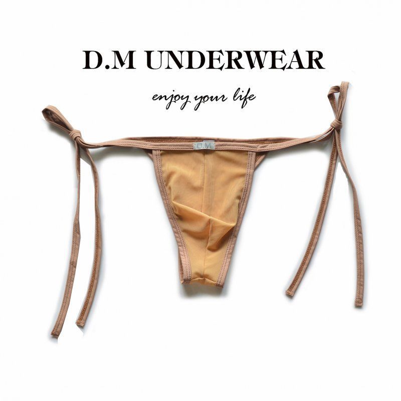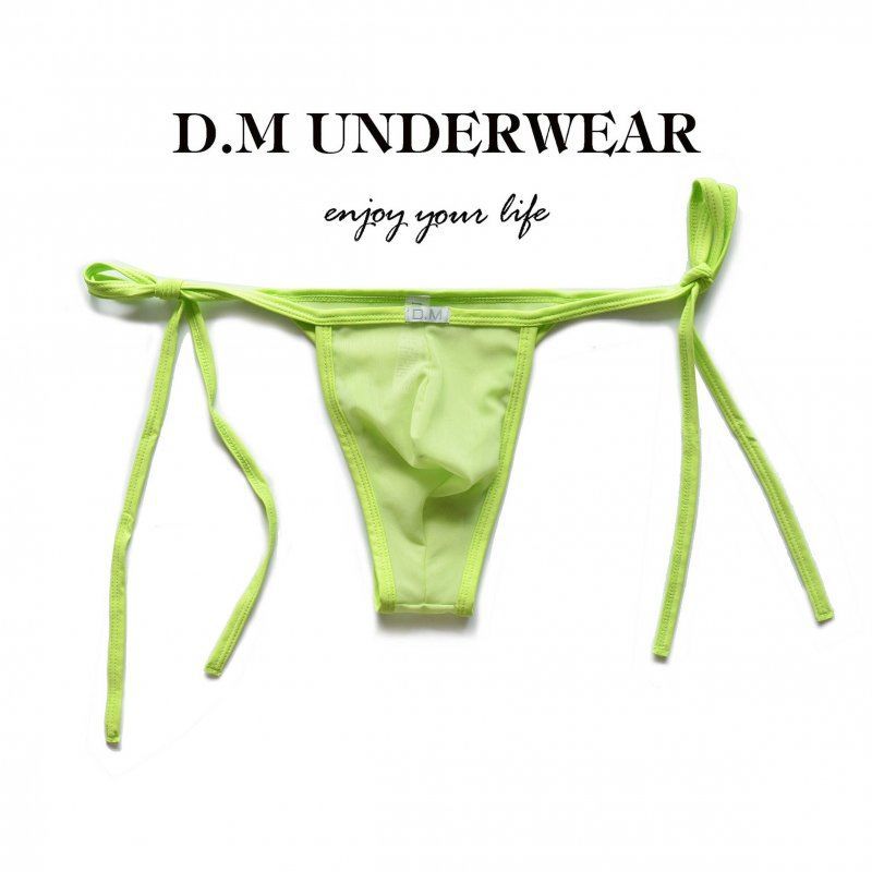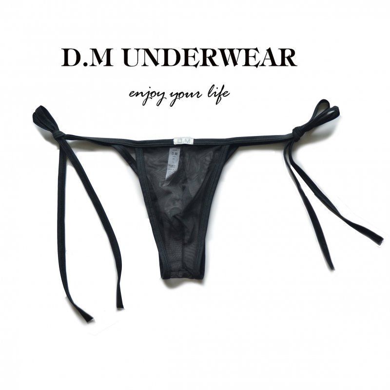 D.M 비키니 레이스 업 독특한 반 노출 남성 속옷 낮은 허리 섹시한 메쉬 투명 섹시한 통기성 빠른 건조 삼각형