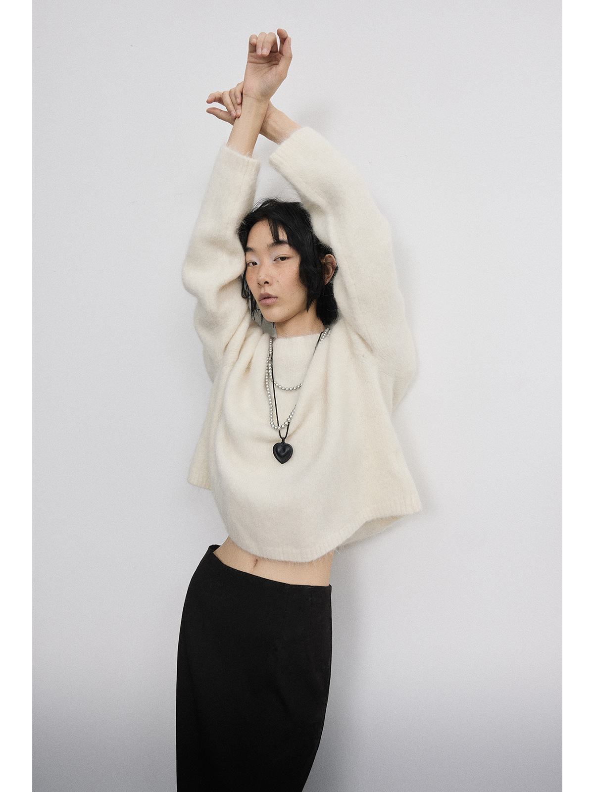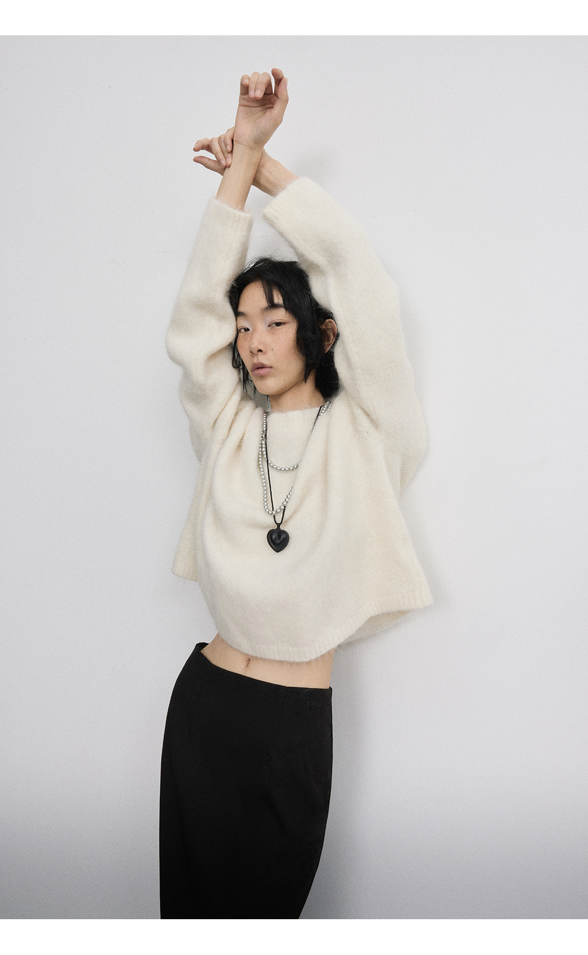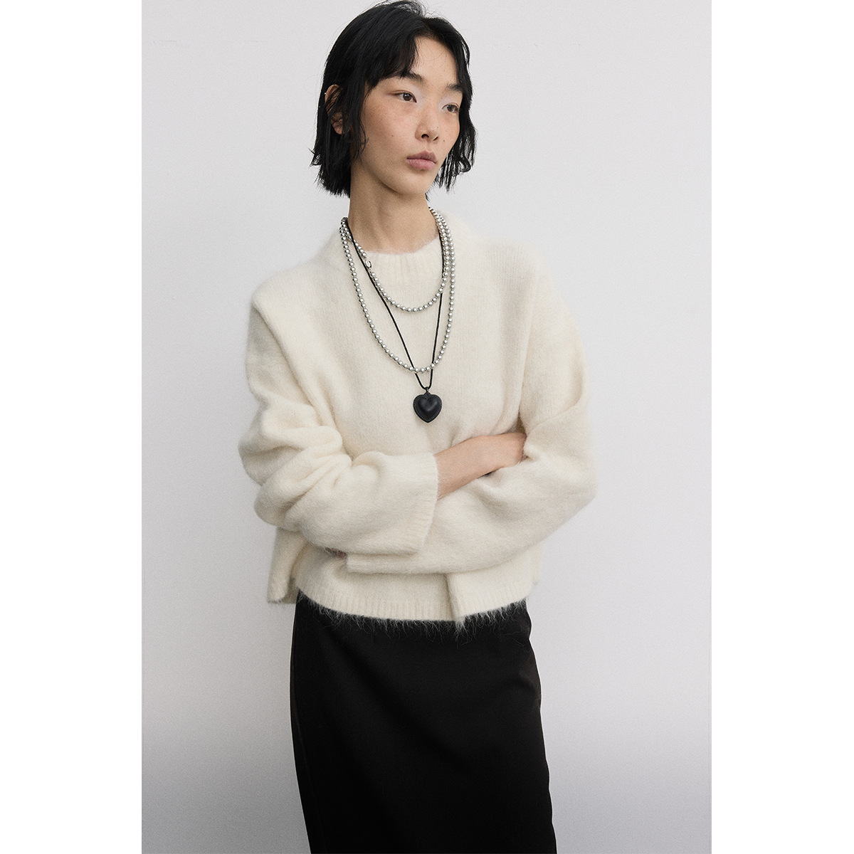 [시시] 신상품 부드럽고 편안한 루즈핏 다용도 롱헤어 알파카 라운드넥 풀오버 긴팔 숏스웨터 V5287