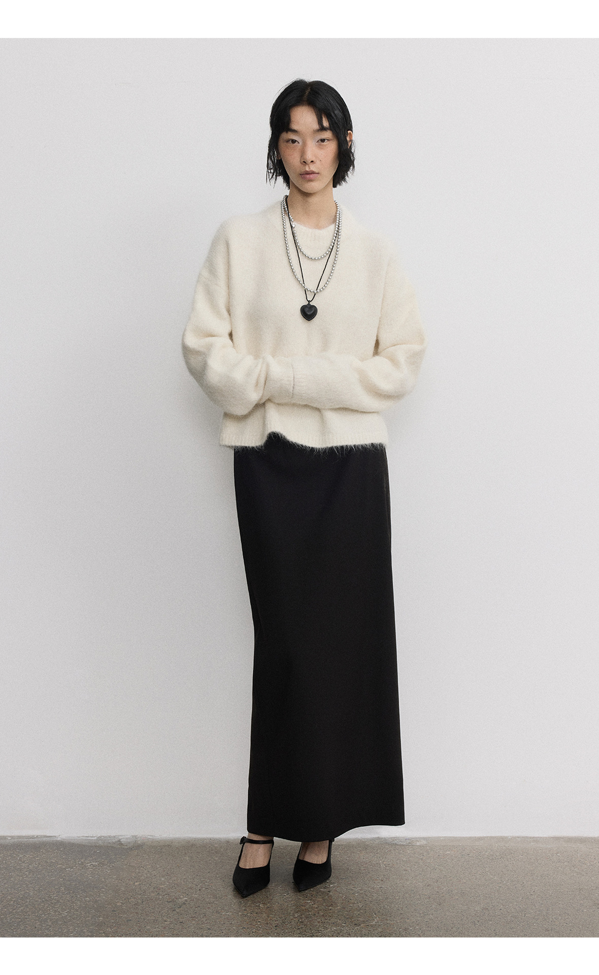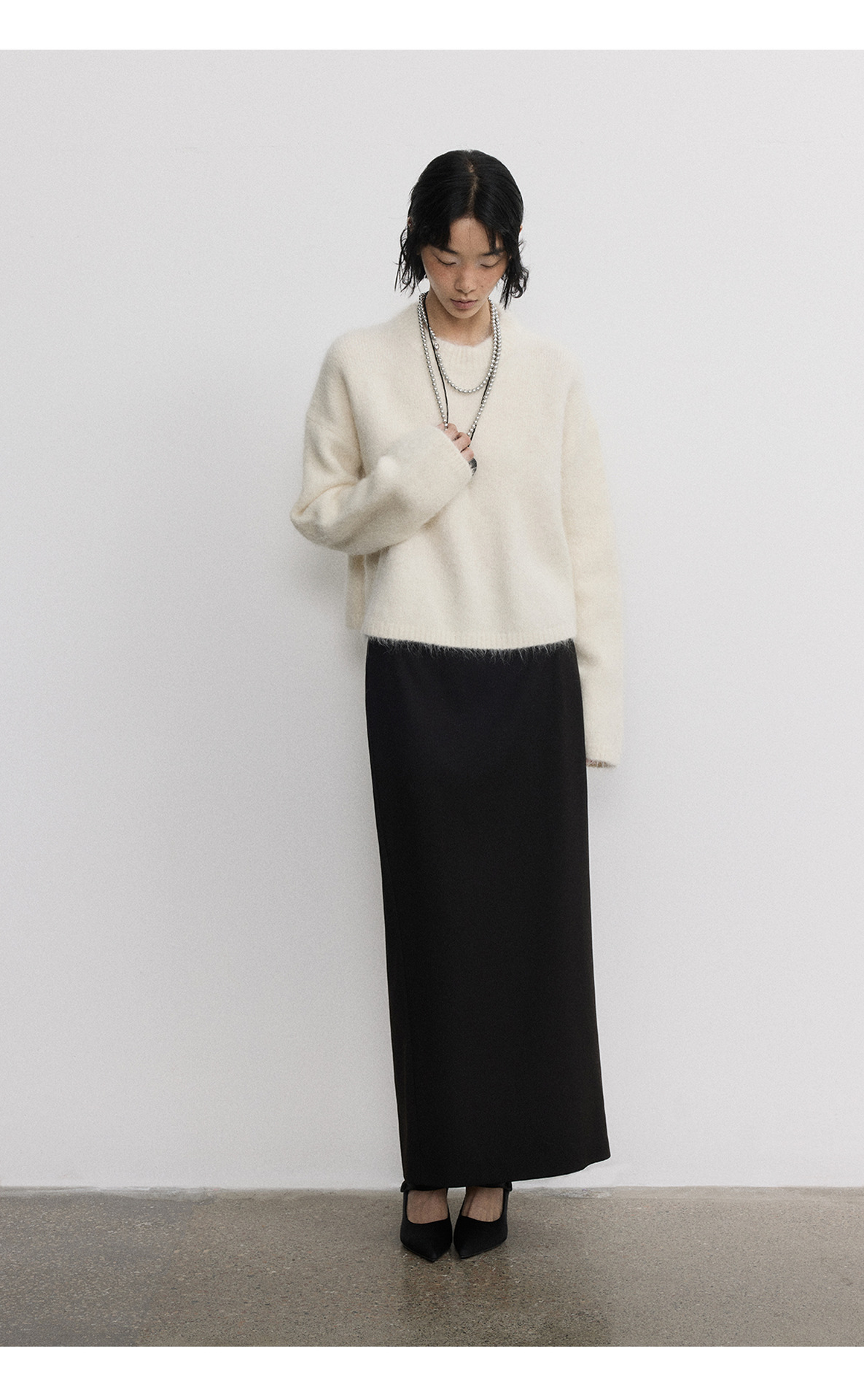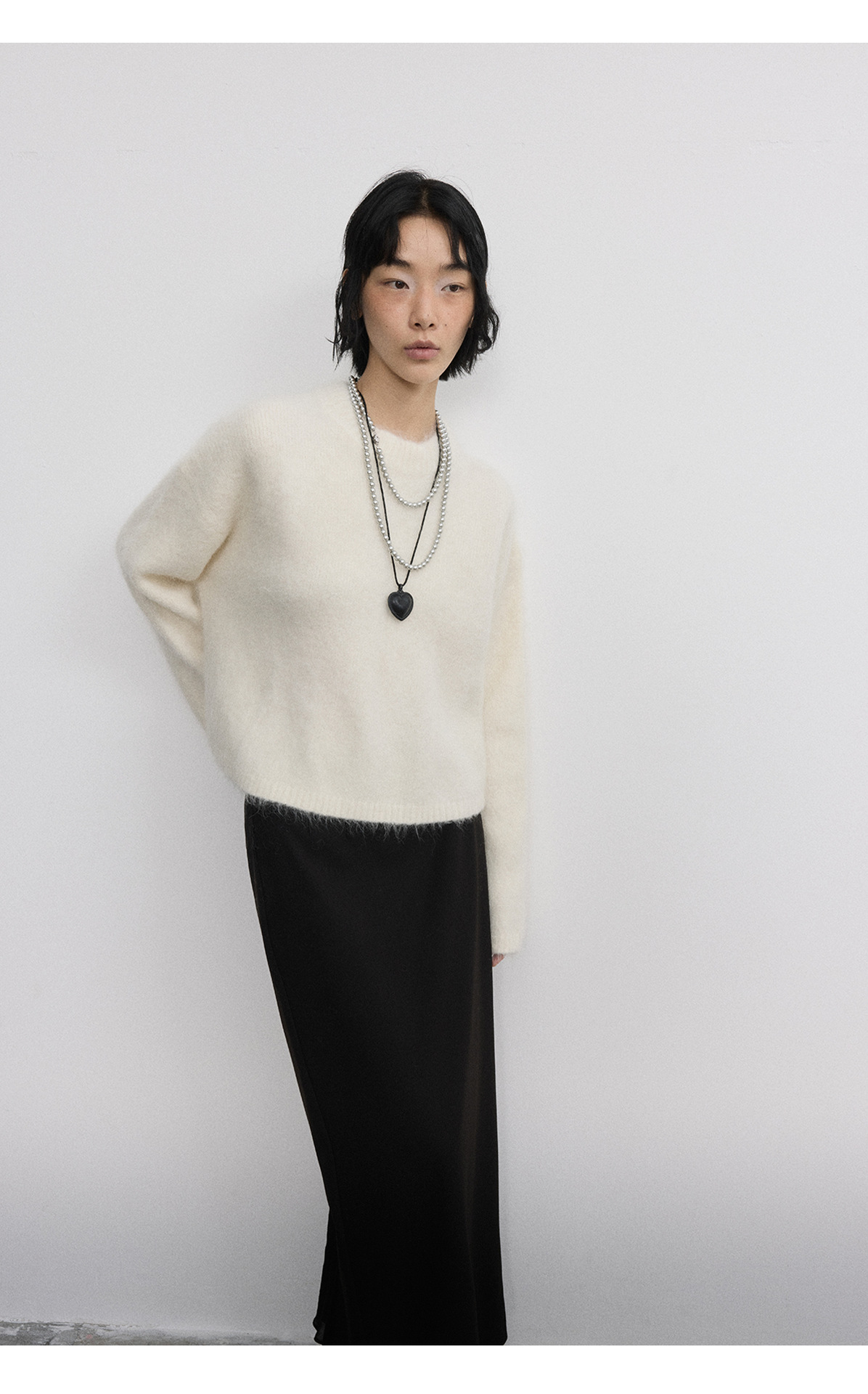 [시시] 신상품 부드럽고 편안한 루즈핏 다용도 롱헤어 알파카 라운드넥 풀오버 긴팔 숏스웨터 V5287