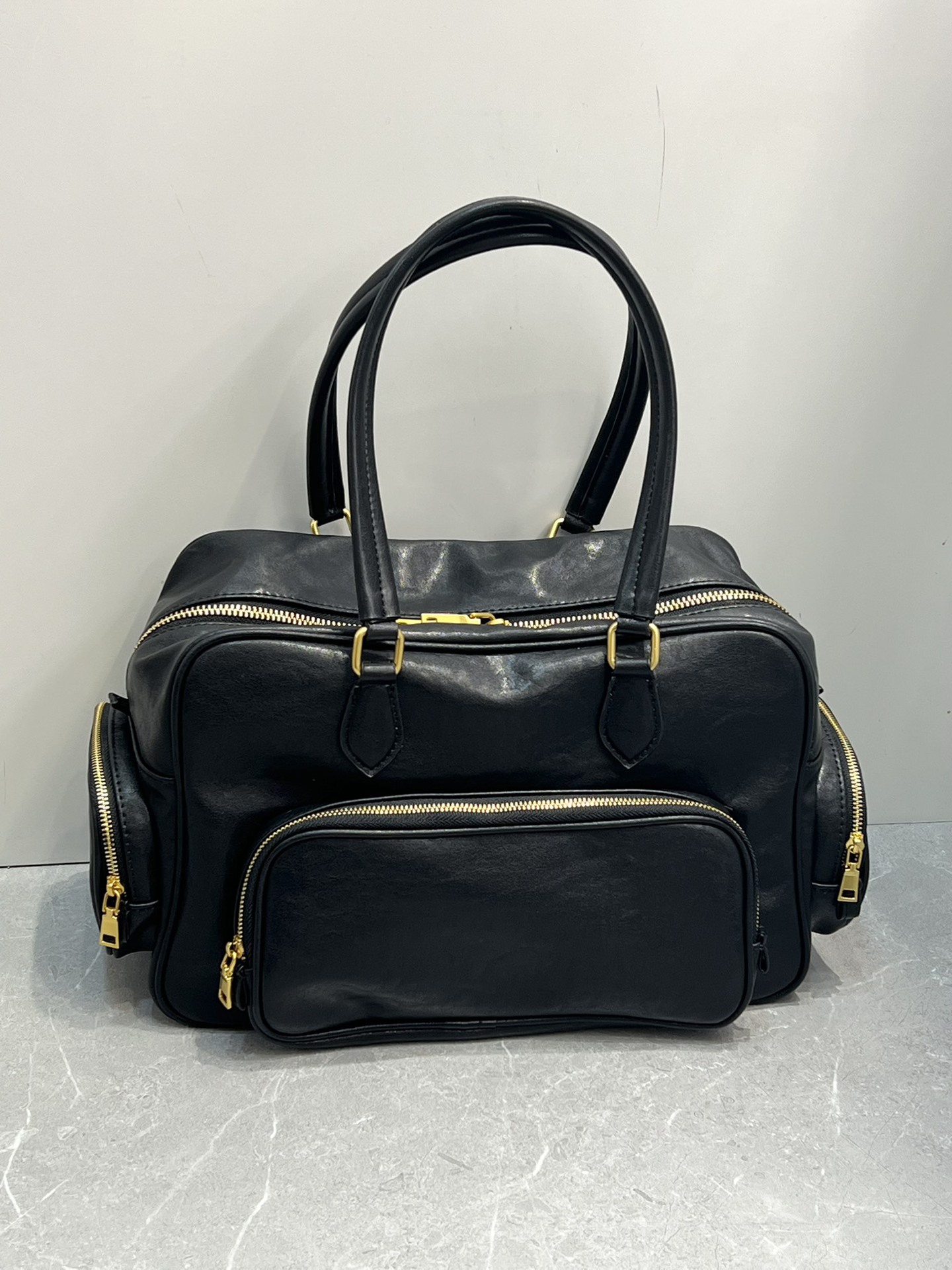 야채 검게 된 Cowhide Tote Bag 대용량 가방 여성의 2024 가을 및 겨울 새 겨드랑이 어깨 가방 보스턴 가방스토어 가기