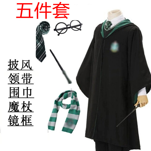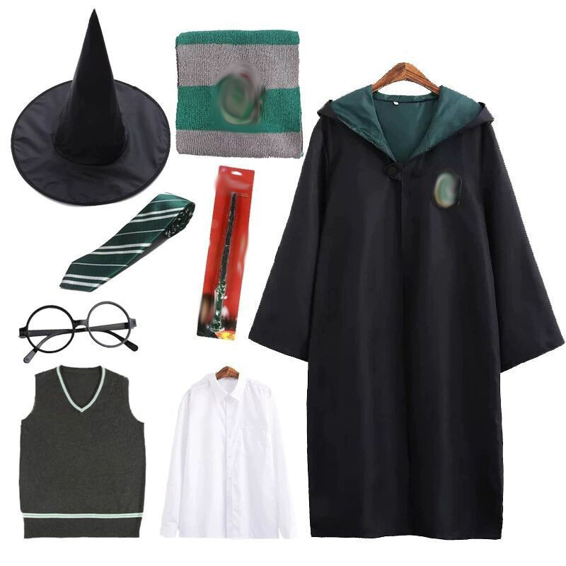 • (8종 세트) 녹색 싱글 가운 + 넥타이 + 스카프 + 프레임 + 마술 지팡이 + 마법사 모자 + 셔츠 + 스웨터