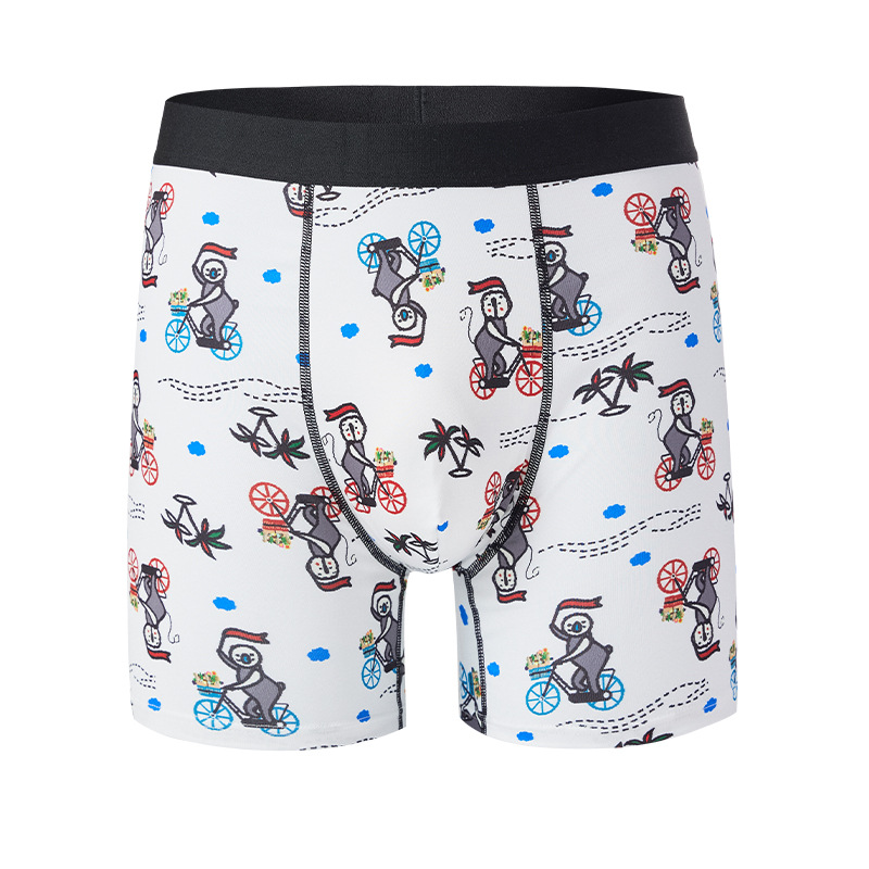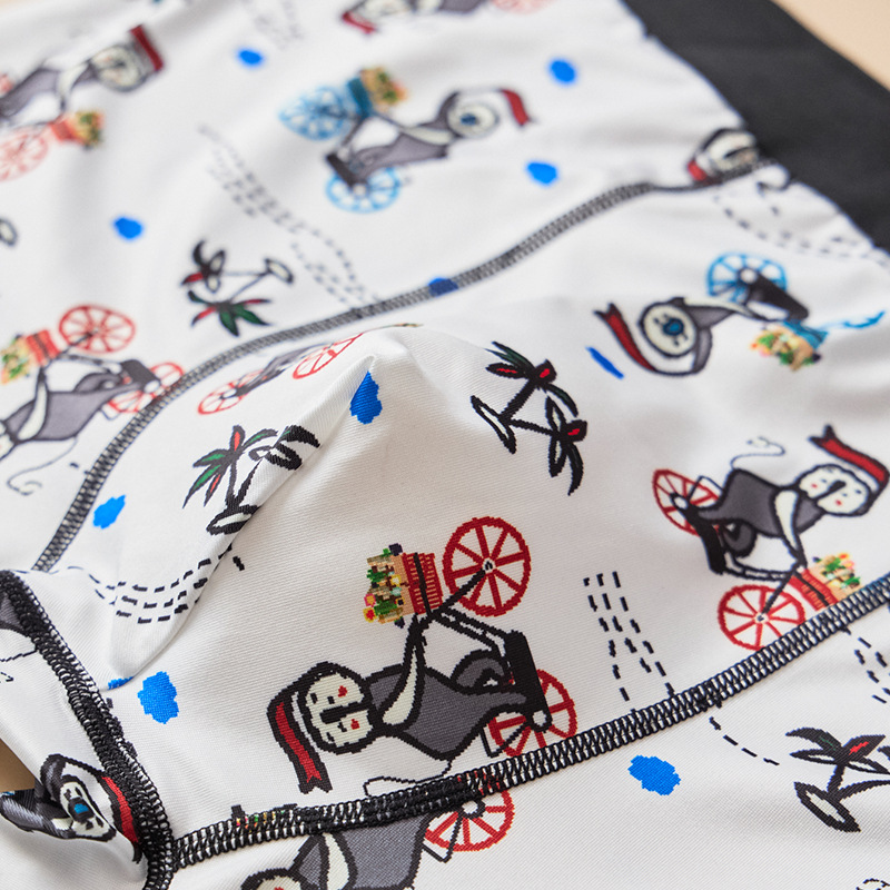 남성 속옷 중간 허리 통기성 인쇄 만화 복서 편안한 추적이없는 면화 내부 크로치 4 코너 바지 새로운 국경스토어 가기