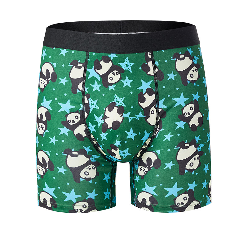 남성 속옷 중간 허리 통기성 인쇄 만화 복서 편안한 추적이없는 면화 내부 크로치 4 코너 바지 새로운 국경
