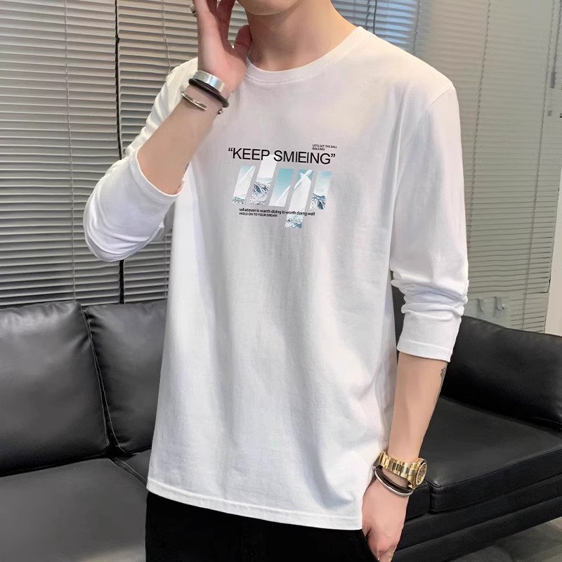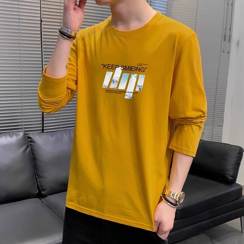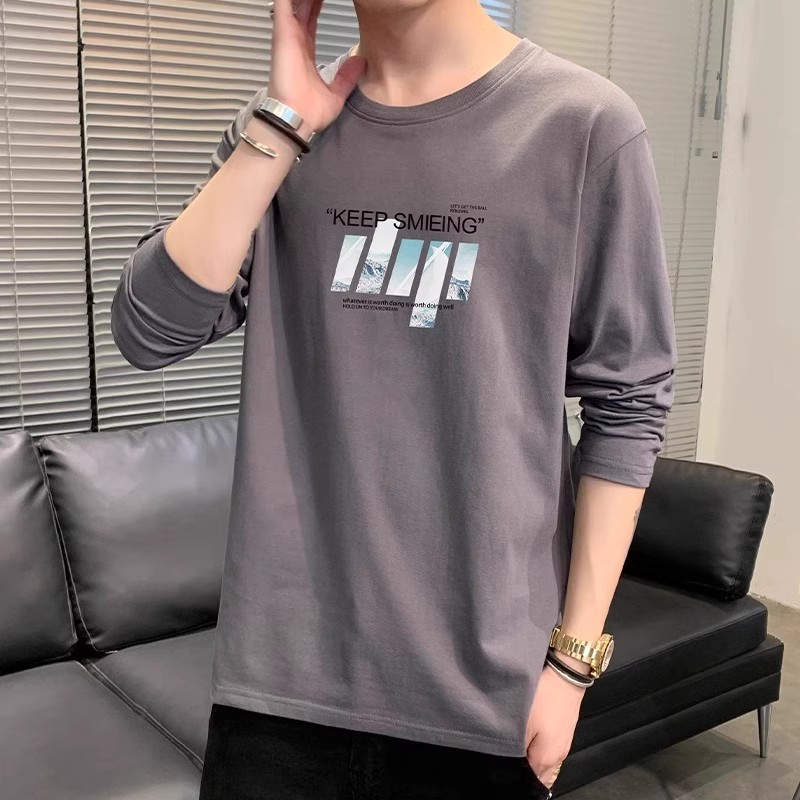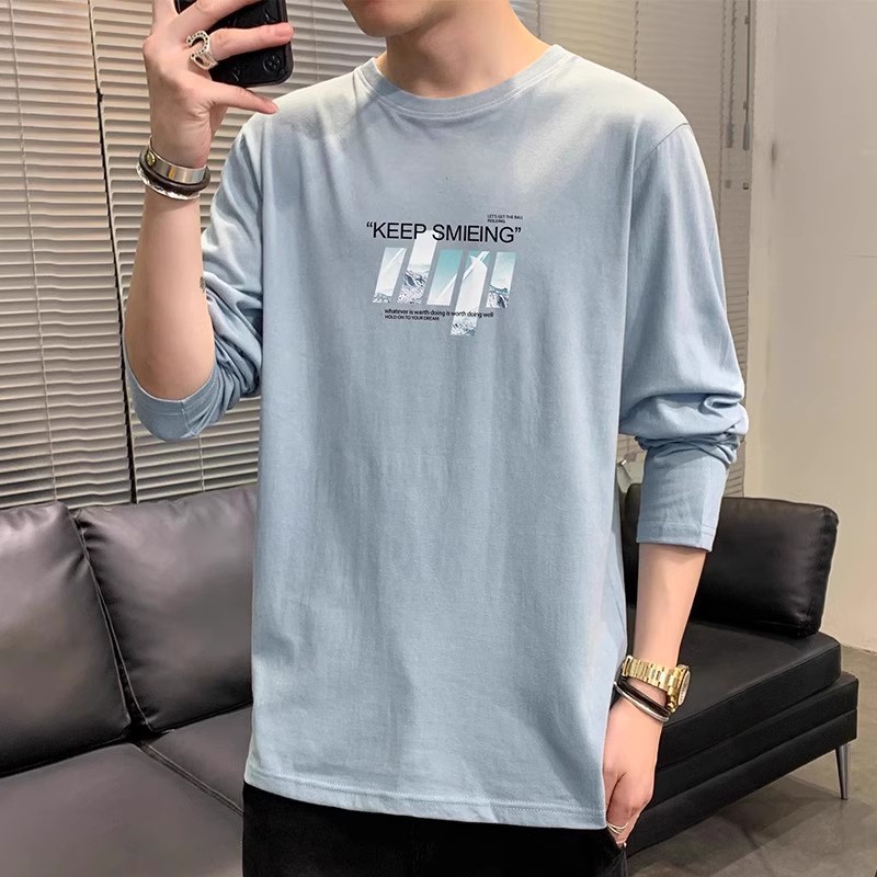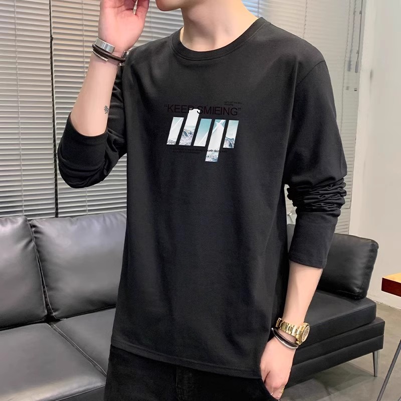 남자 가을 새로운 라운드 넥 슬림베이스 셔츠 유행 긴 소매 티셔츠 남자 올 매치 캐주얼 스포츠 톱 남자스토어 가기
