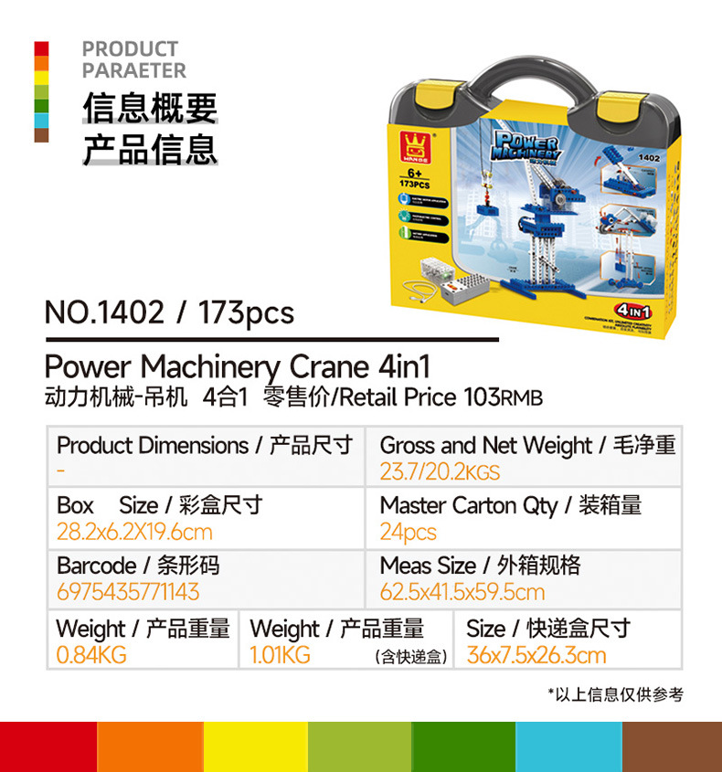 Wange 빌딩 블록 작은 입자 빌딩 블록 시리즈 국내 조립 장난감 전원 기계와 호환-크레인 4 in 1