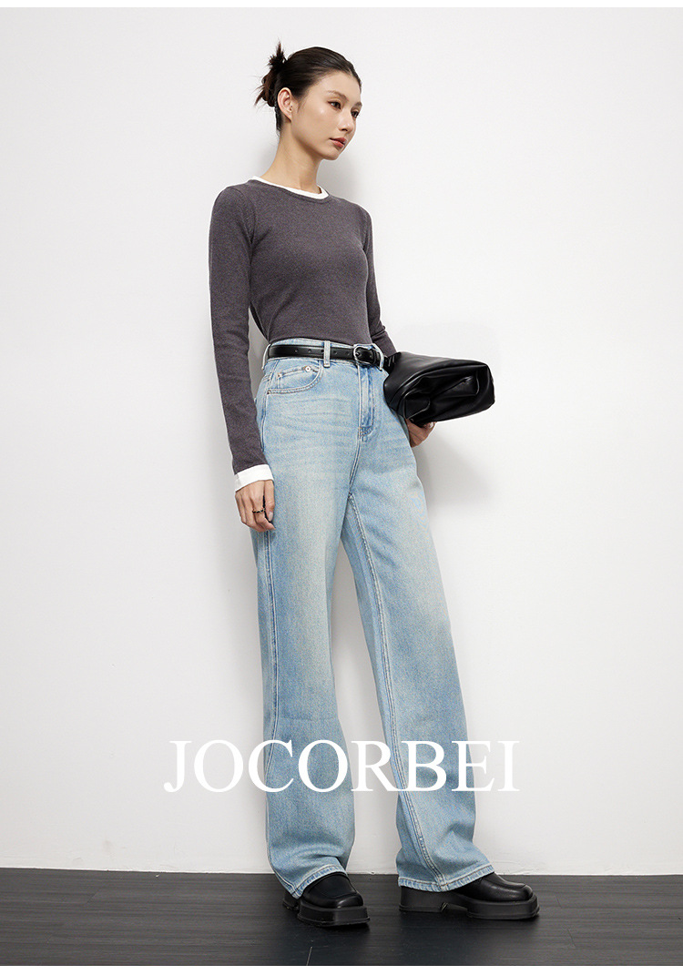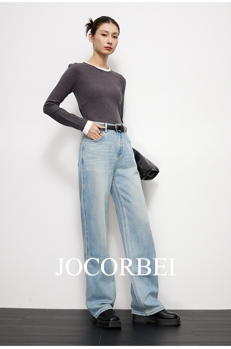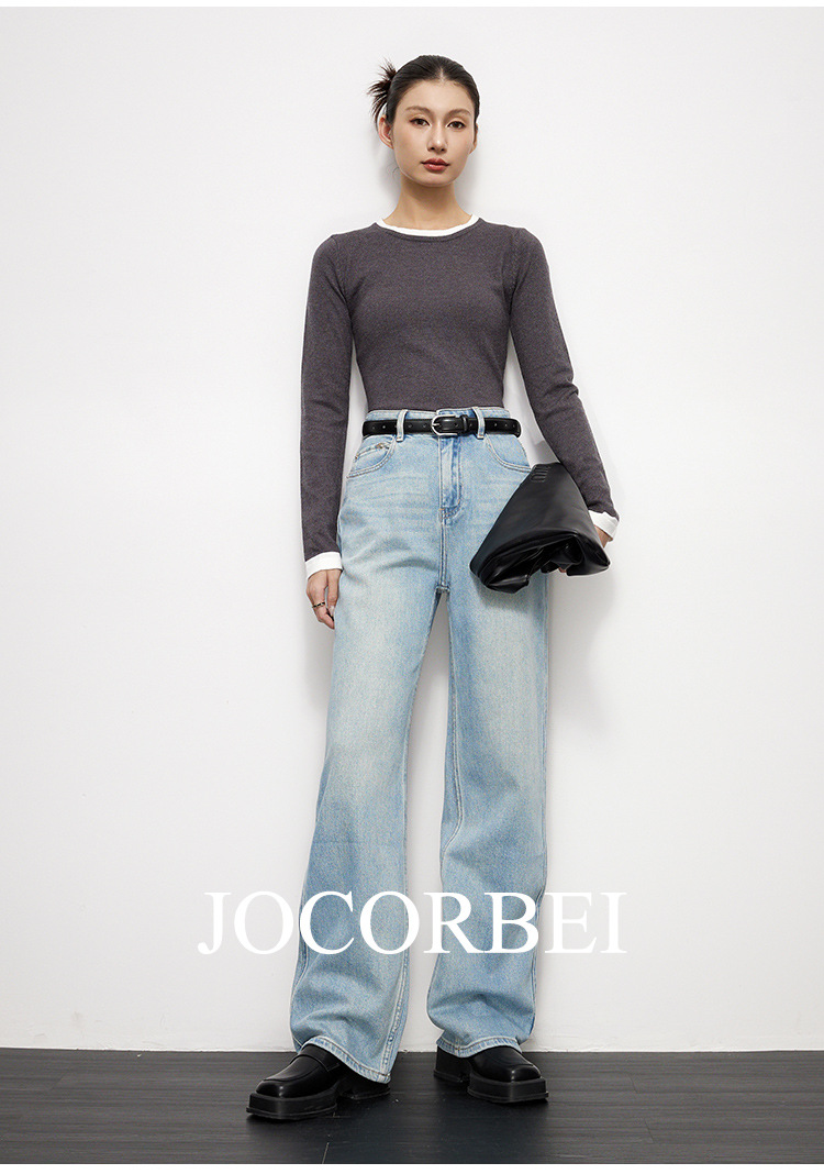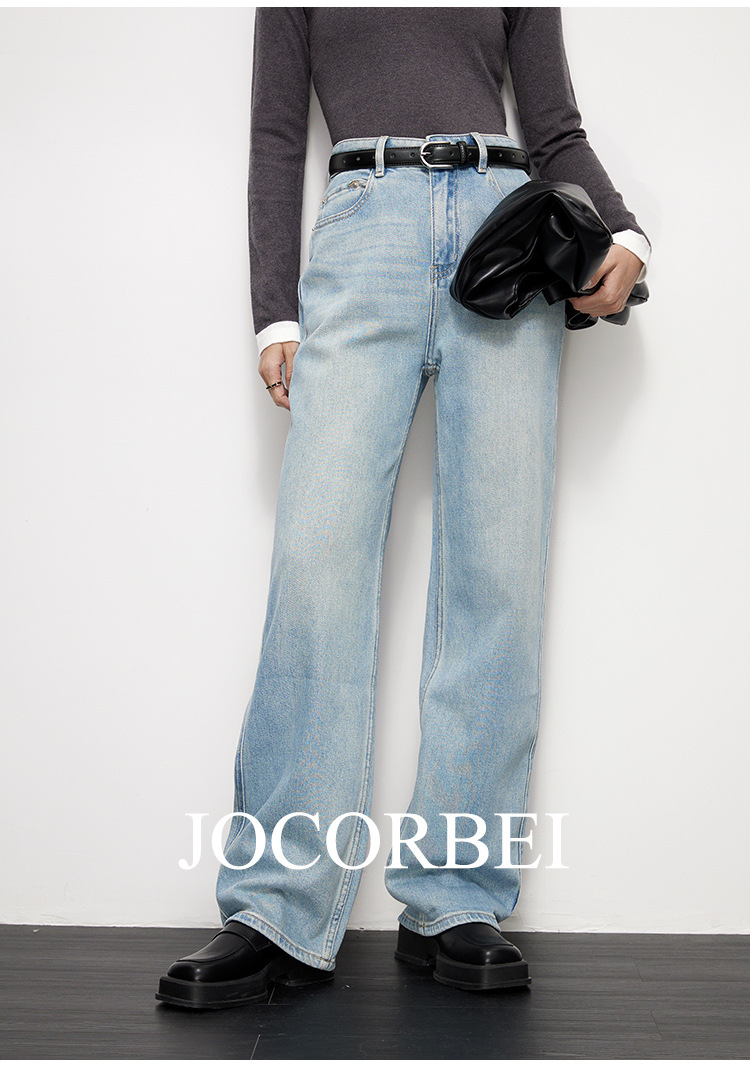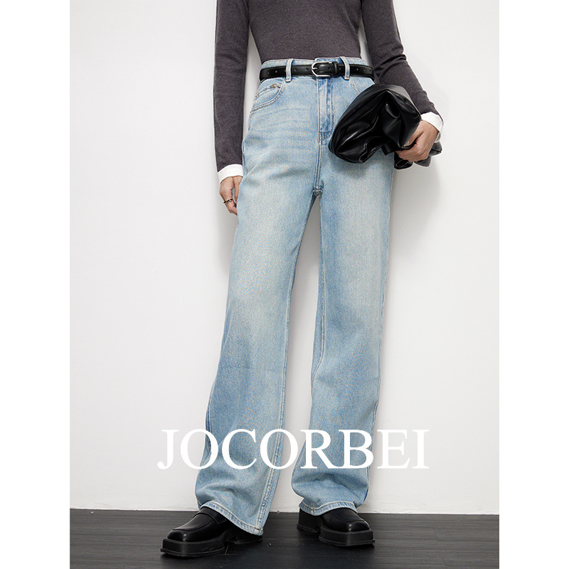 JOCORBEI [Four Seasons Bibei] 세탁 블루 와이드 레그 팬츠 여성용 하이 웨이스트 루즈 스트레이트 청바지 바지스토어 가기