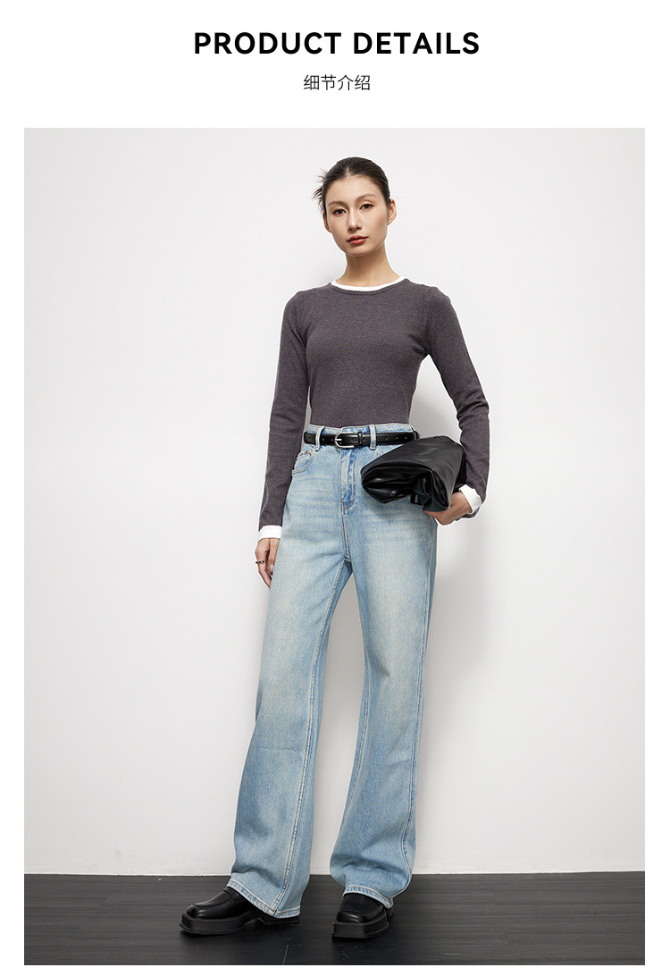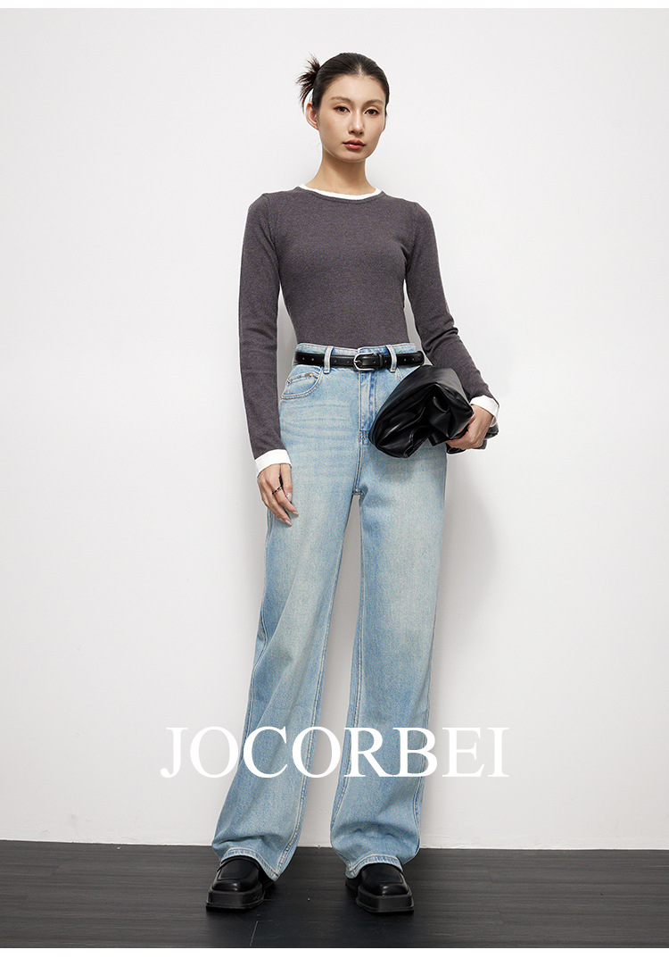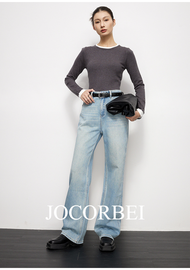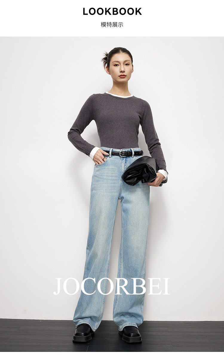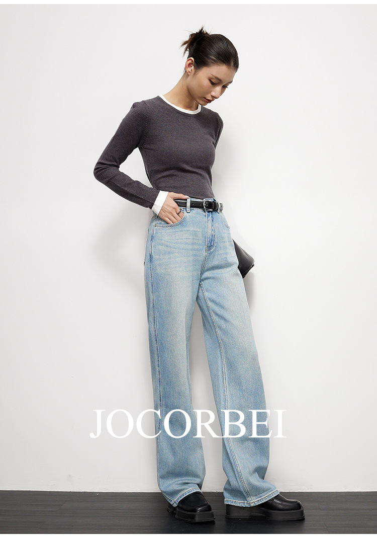 JOCORBEI [Four Seasons Bibei] 세탁 블루 와이드 레그 팬츠 여성용 하이 웨이스트 루즈 스트레이트 청바지 바지스토어 가기