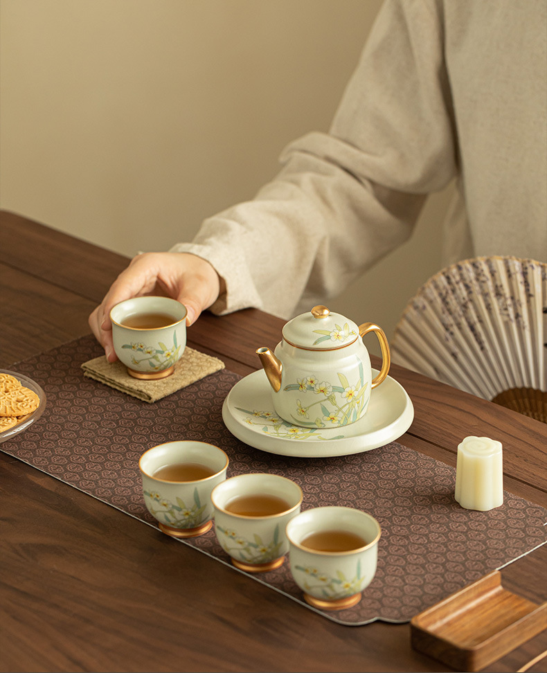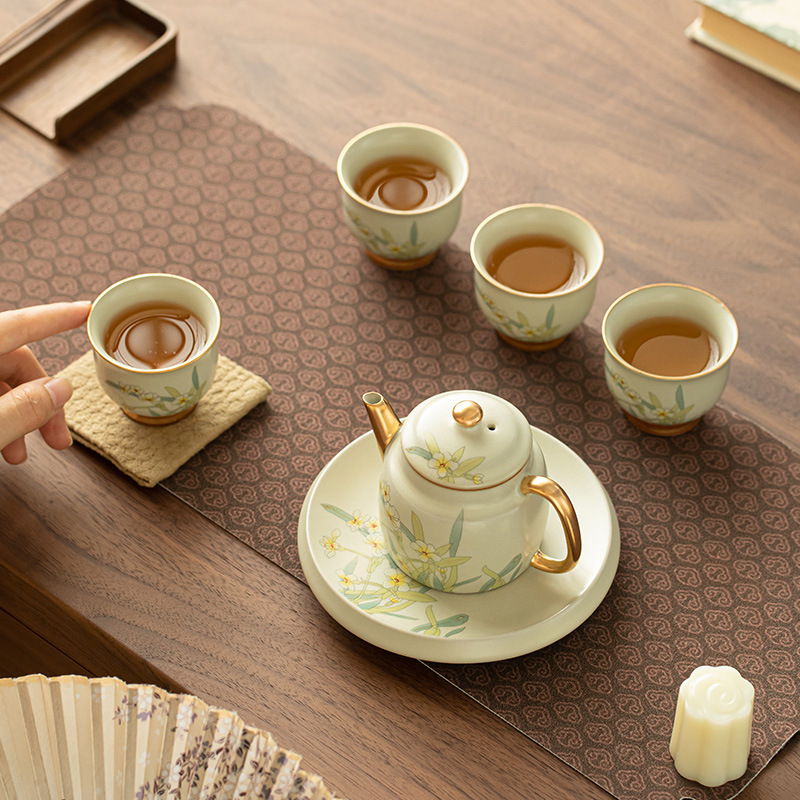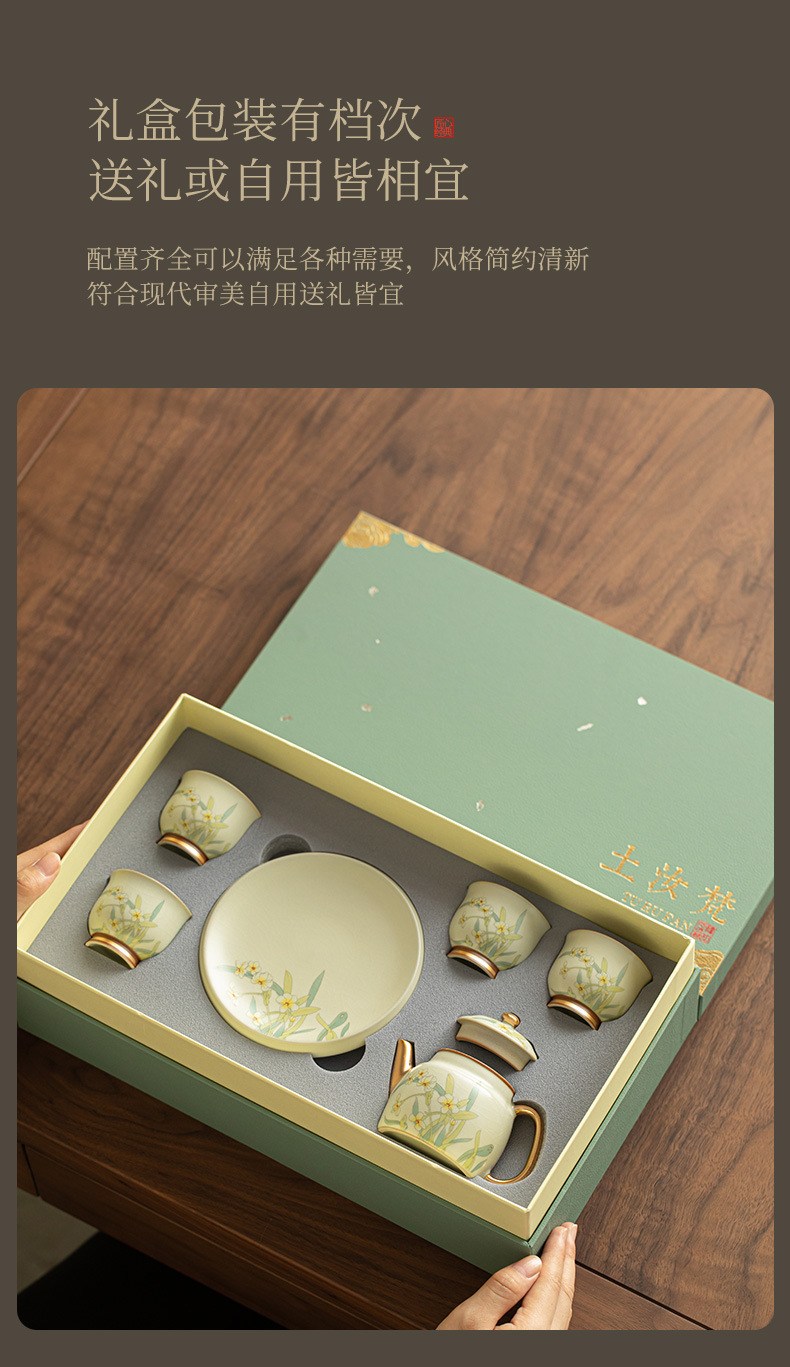 루 가마 주전자 찻잔 국가 스타일 골드 페인팅 주전자 빛 고급 오픈 필름은 손 선물 세트 선물로 쿵푸 차 세트를 올릴 수 있습니다.스토어 가기