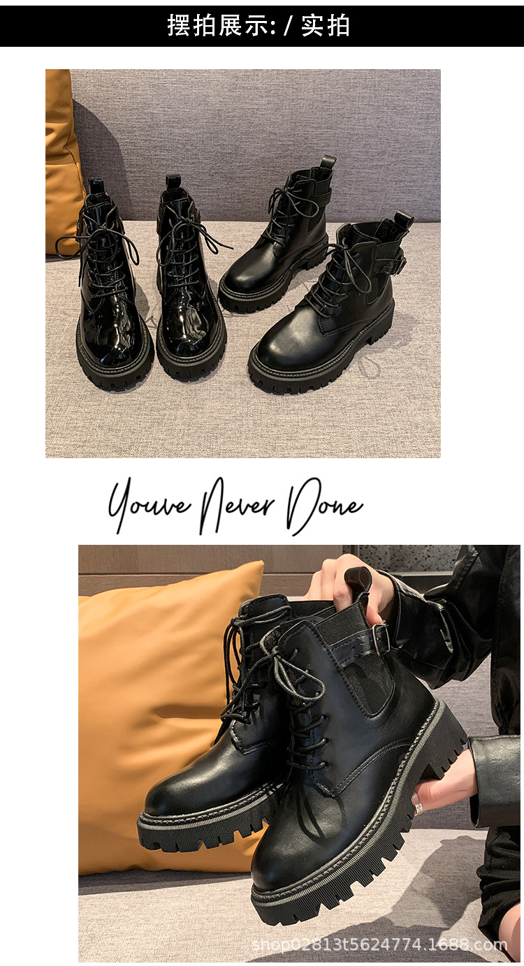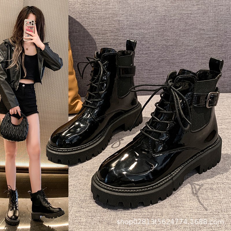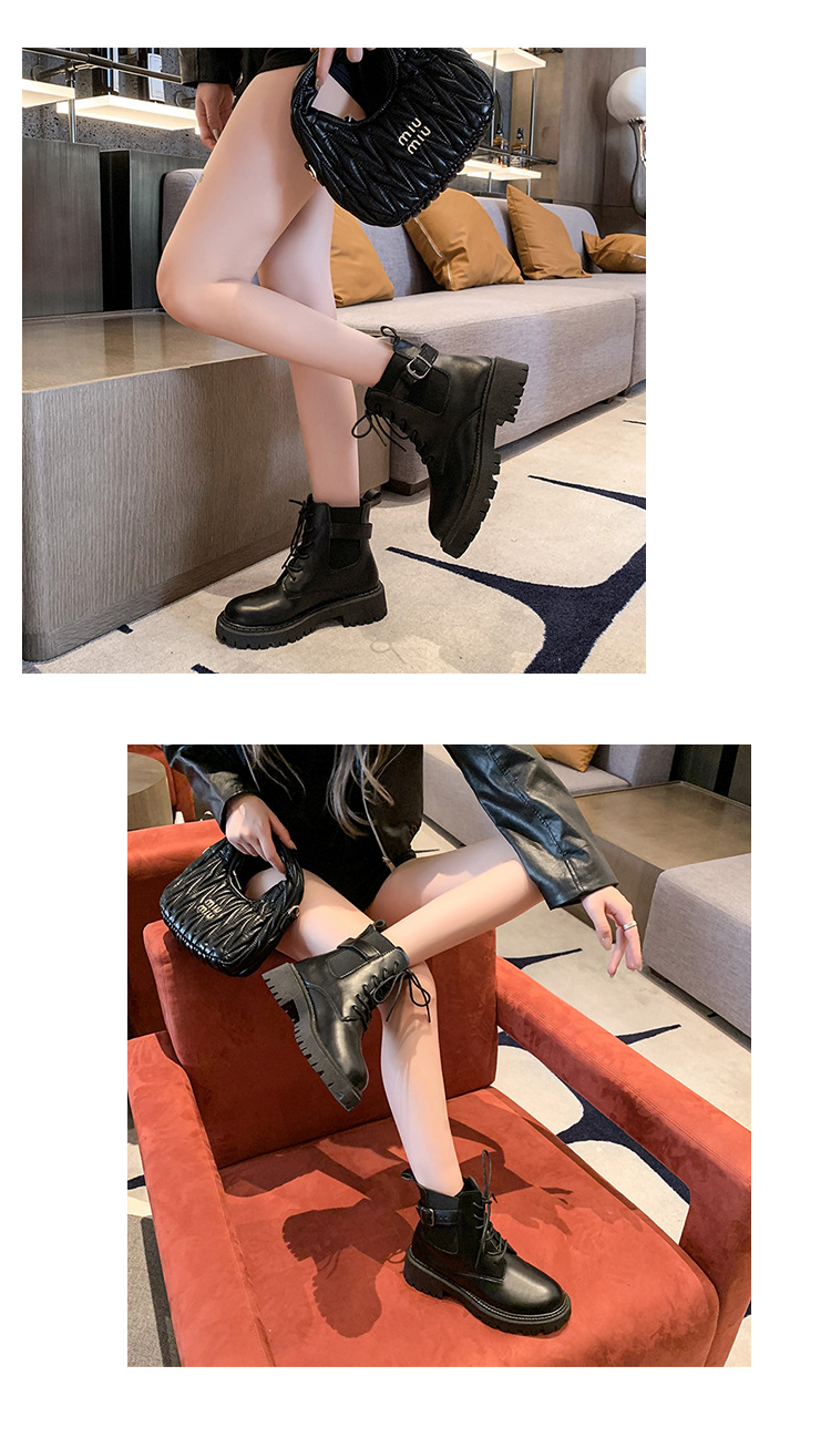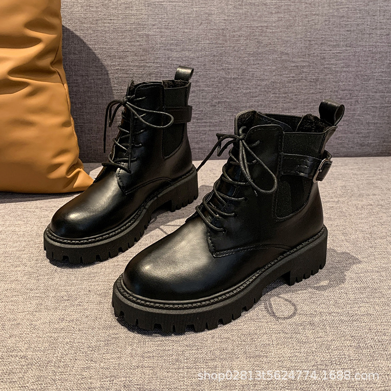 2024 가을과 겨울 새로운 쇼트 부츠 캐주얼 올 매치 레이스업 영국 스타일 싱글 부츠 두꺼운 하단 유행 낮은 배럴 마틴 부츠스토어 가기