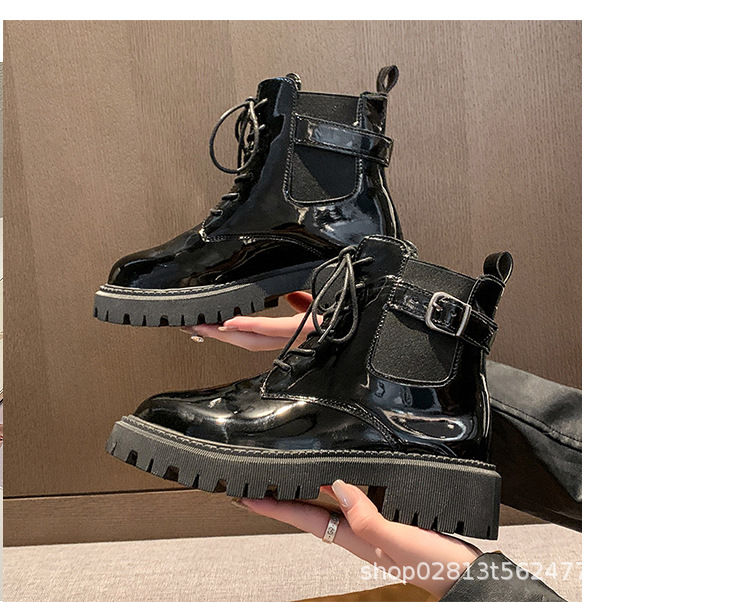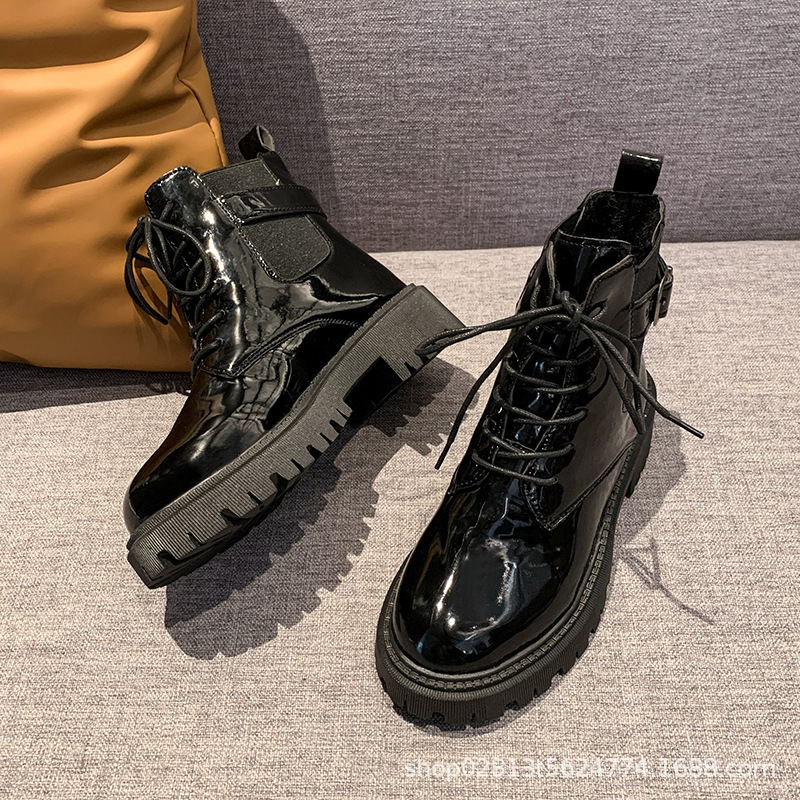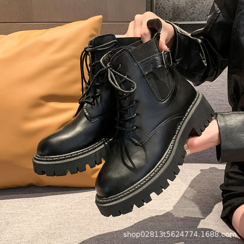 2024 가을과 겨울 새로운 쇼트 부츠 캐주얼 올 매치 레이스업 영국 스타일 싱글 부츠 두꺼운 하단 유행 낮은 배럴 마틴 부츠