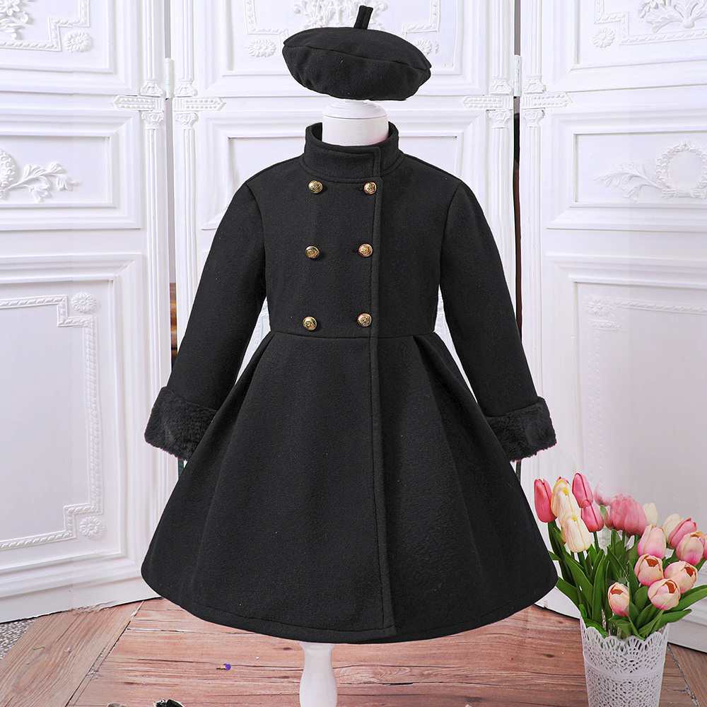 EW 대외 무역 아동복 큰 소녀 가을과 겨울 새로운 수직 칼라 더블 브레스트 모직 코트 DWT632-C 모자