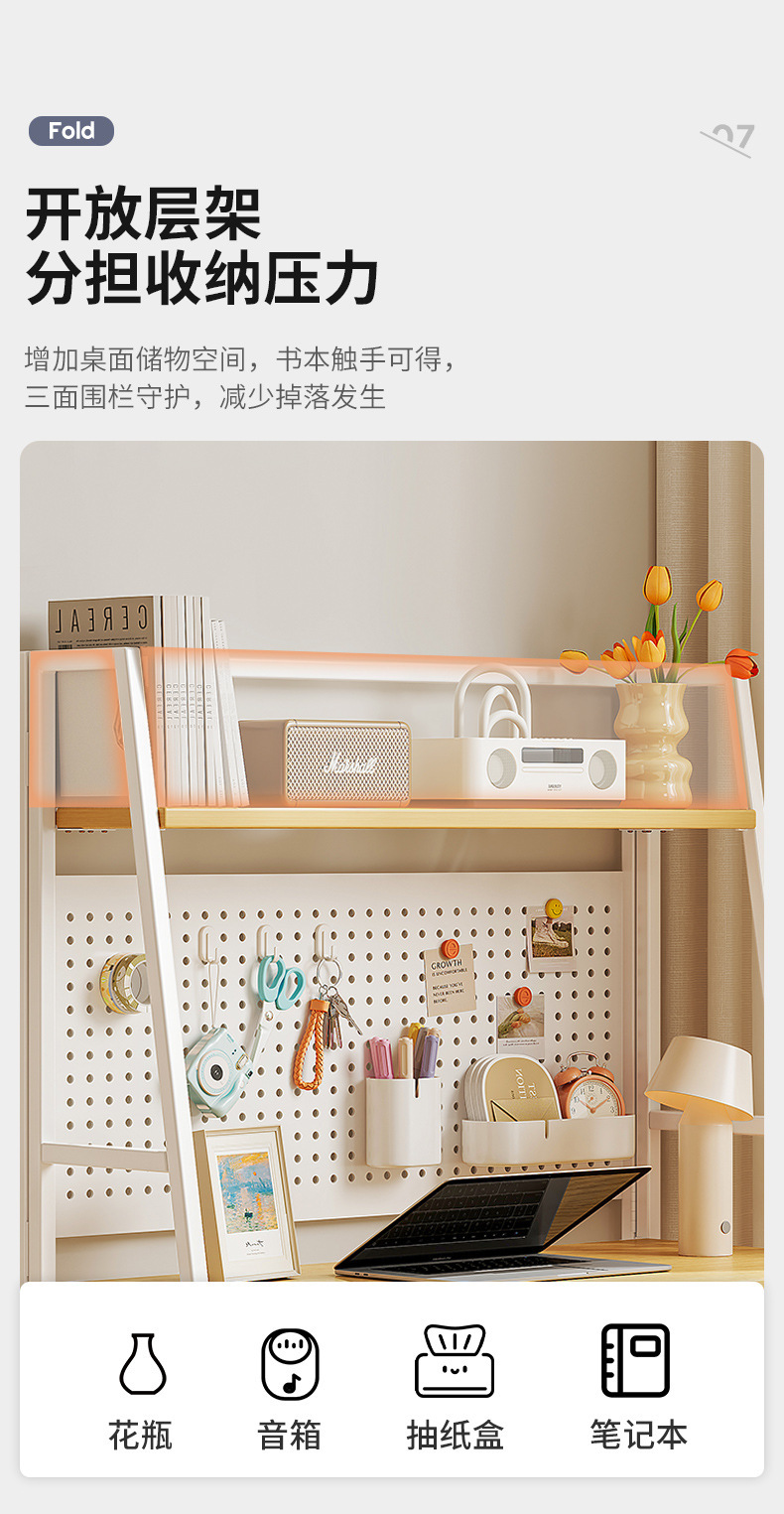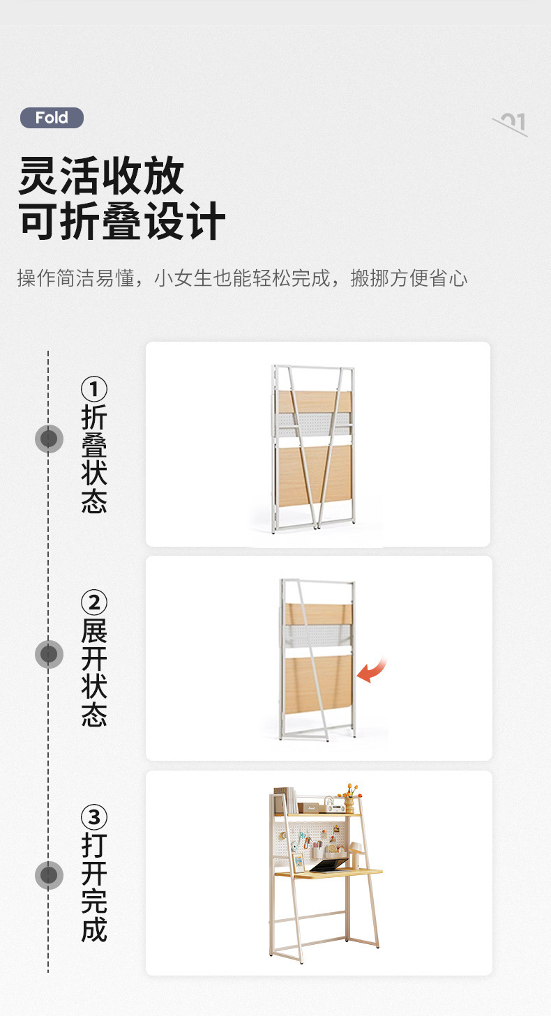 折叠书桌小户型家用电脑桌卧室床边桌子简易出租屋学生学习洞洞板