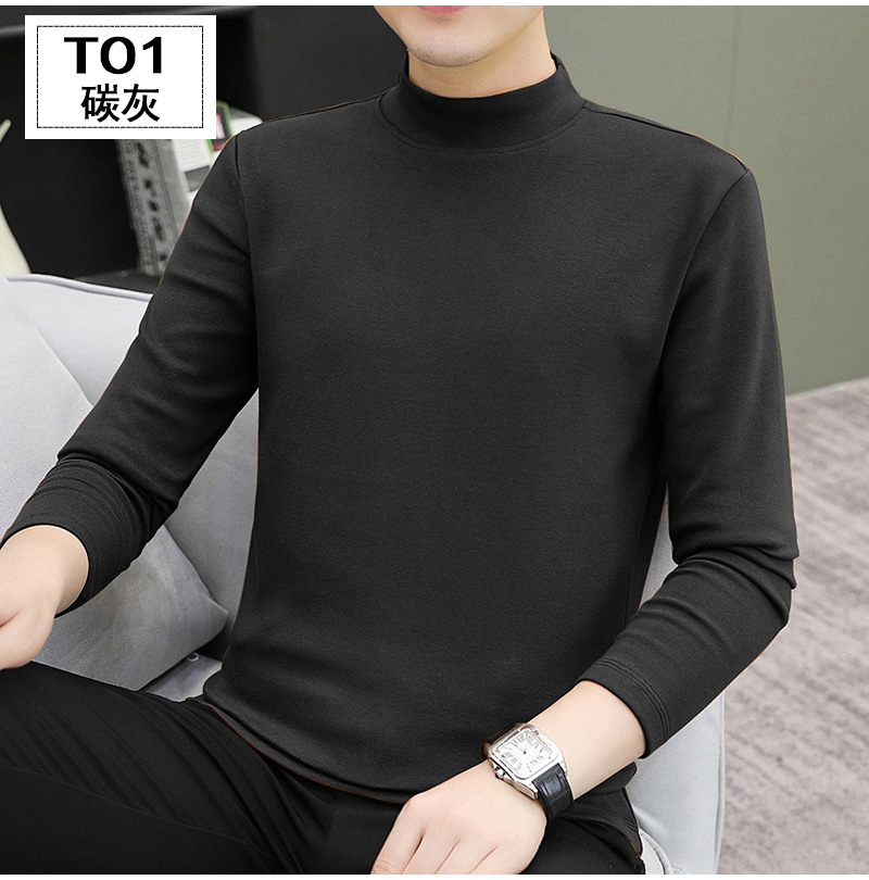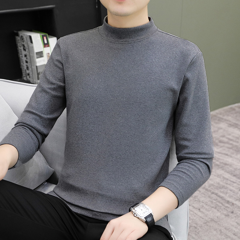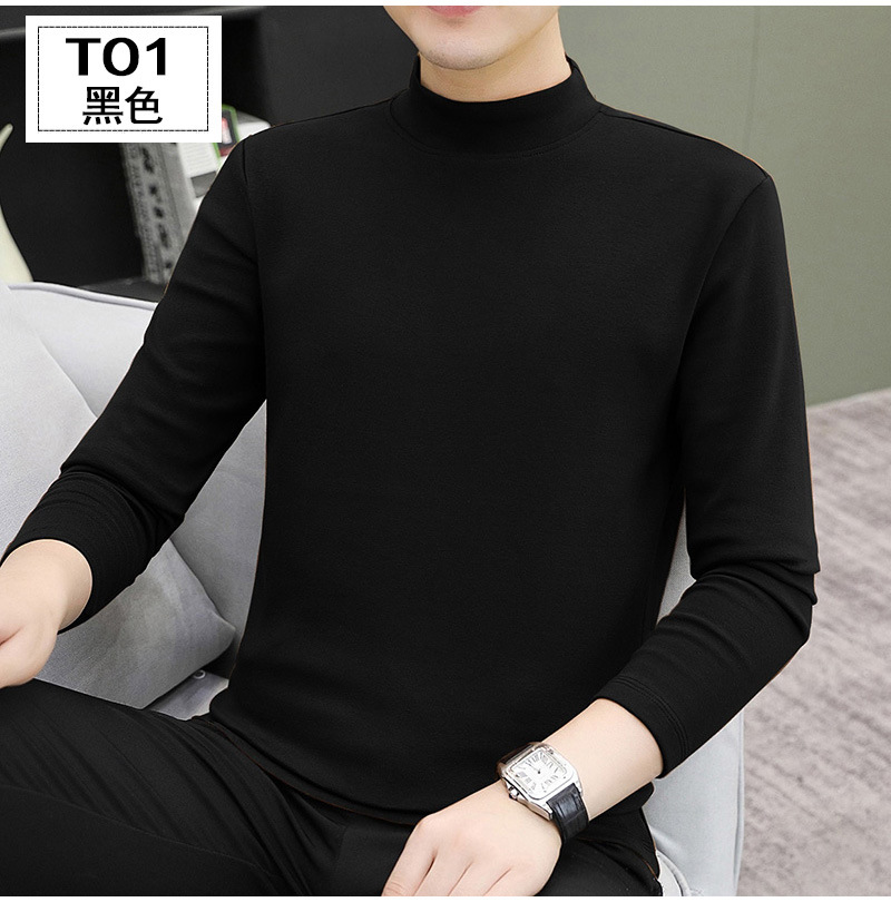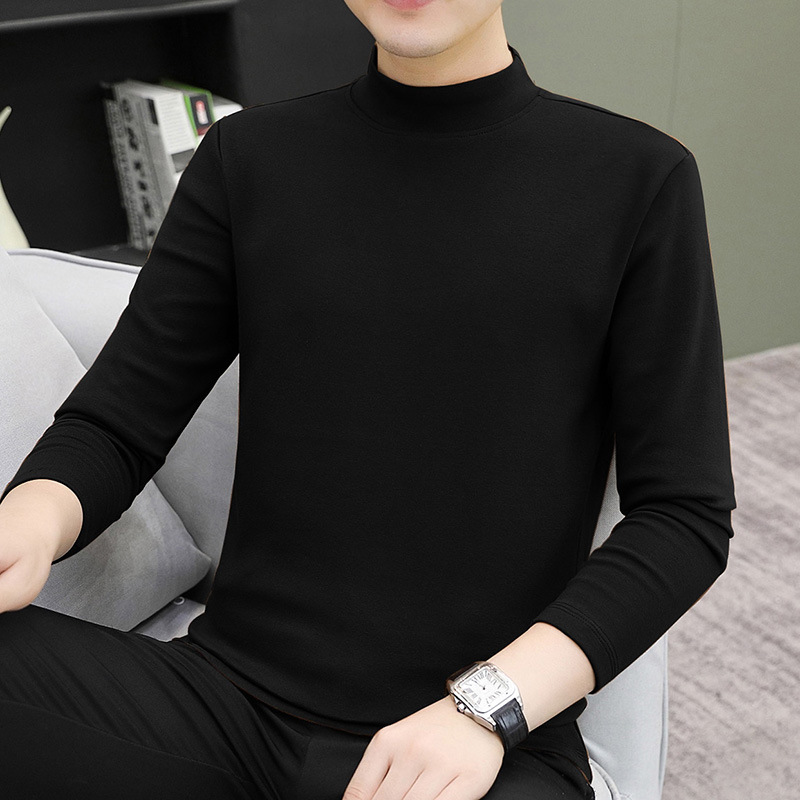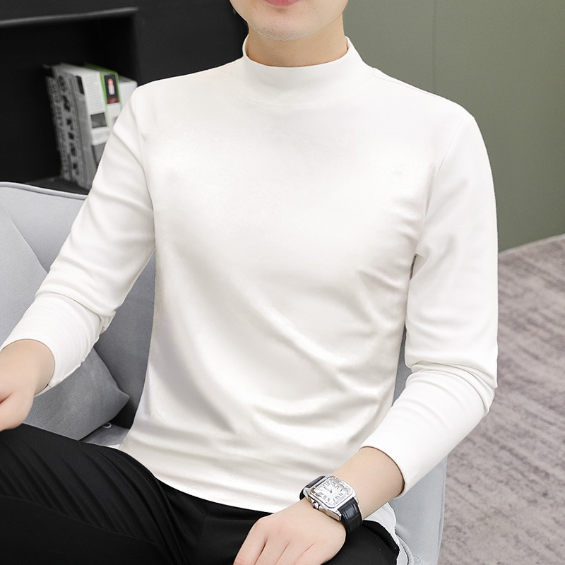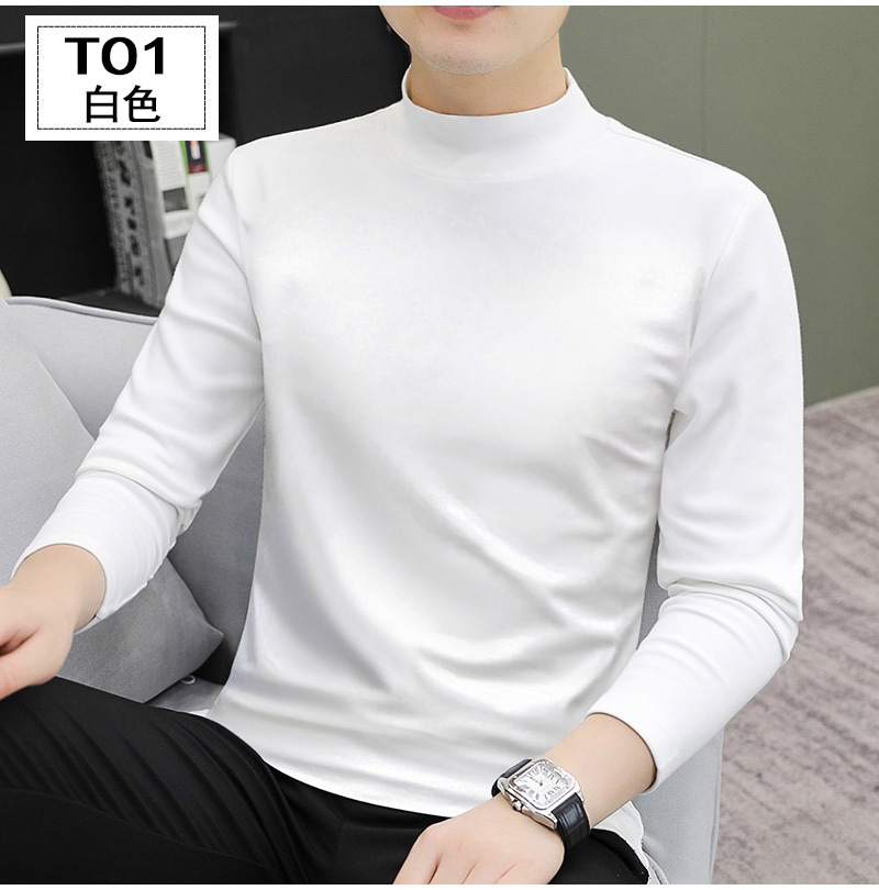 미드 칼라 남성 긴팔 가을 겨울 유행 슬림 핏 화이트 코튼 하프 하이 칼라 티셔츠베이스 셔츠 가을 티셔츠